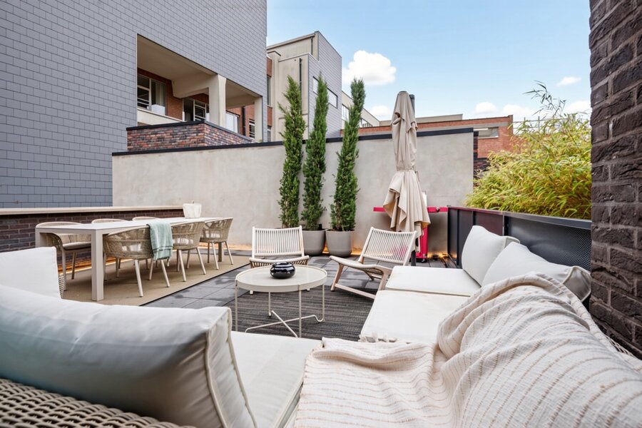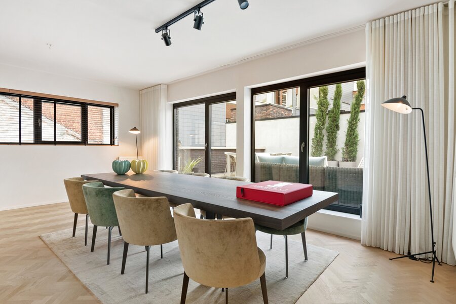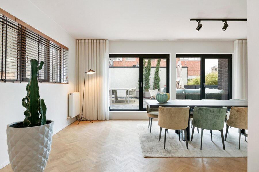 Verborgen in een rustige, groene binnentuin van de Solvynsstraat schuilt een appartement waar moderne verfijning en stedelijke sereniteit elkaar moeiteloos vinden. Hier geniet u van luxueus wooncomfort, ver weg van het stadsrumoer maar toch met de Antwerpse hotspots binnen handbereik.