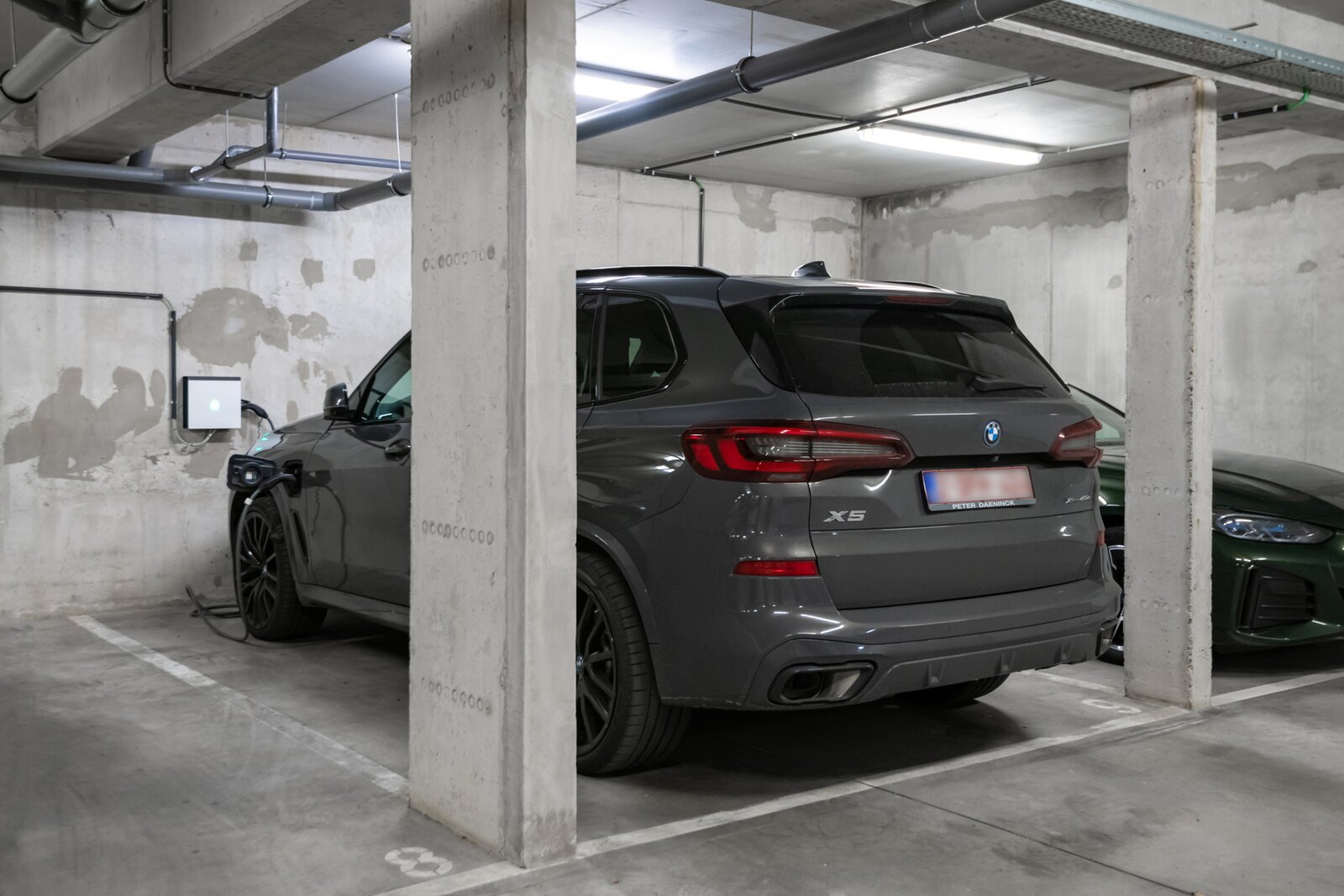 Een ondergrondse autostaanplaats met laadpaal is mogelijk bij aan te kopen aan €45.000.