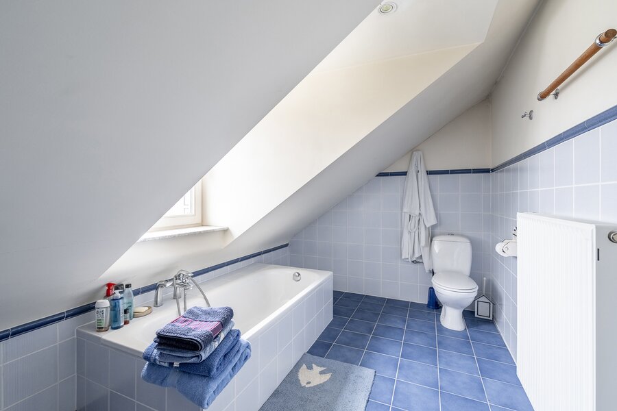 De tweede verdieping omvat een zeer ruime, volwaardige slaapkamer, een tweede badkamer en een toilet.