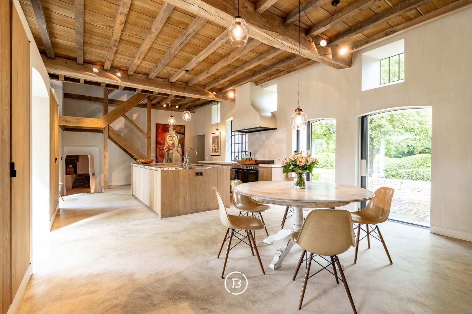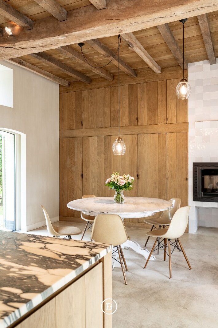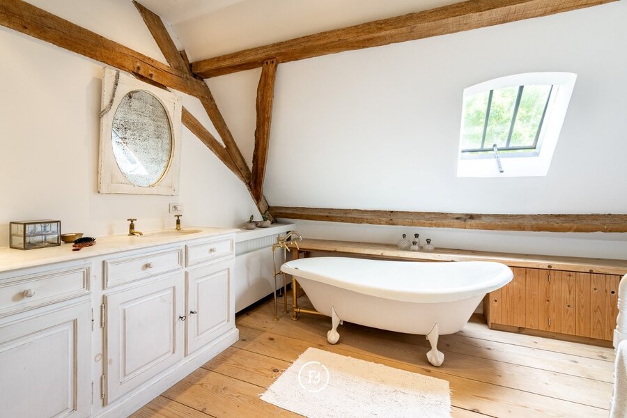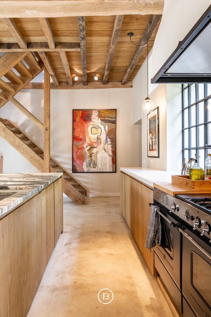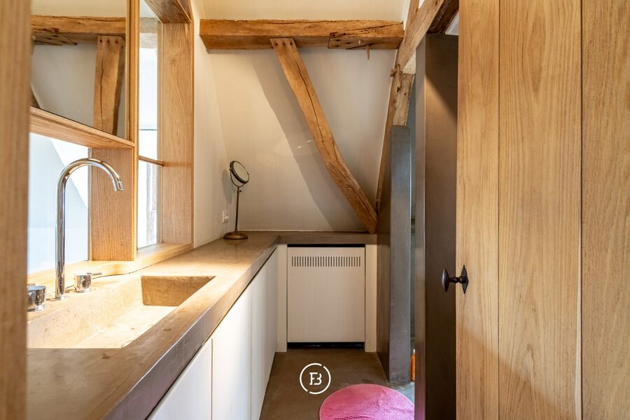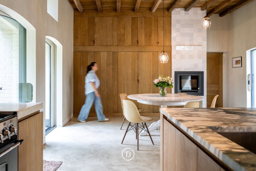 De hoofdwoning onderging in 1999 een grondige restauratie en kreeg in een 2de fase anno 2016 een facelift van het interieur (architect S. Boens). De woning geniet een hoogstaand en luxueuze afwerking en is voorzien van alle hedendaags comfort. De schuur ligt in het verlengde van de woning en omvat een enorm volume. De schuur doet momenteel dienst als opslag / berging, werd op heden niet verder afgewerkt.