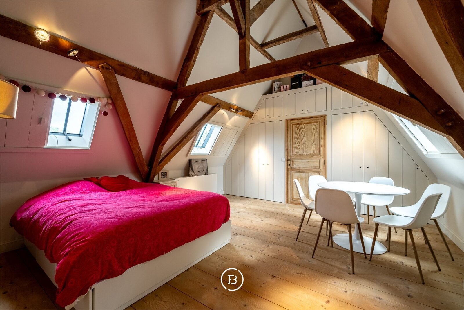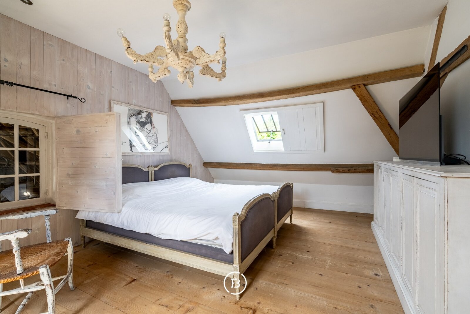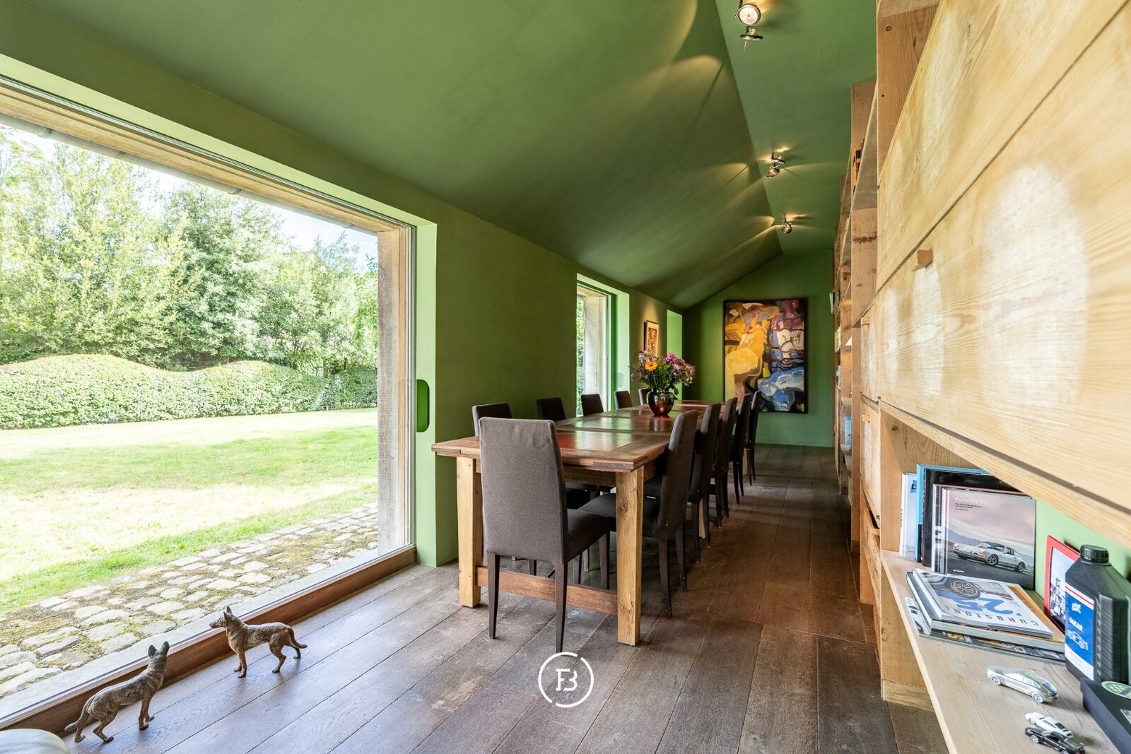 Achteraan de schuur vinden we de garage die plaats biedt voor 3 wagens en voorzien is van een zolder. (renovatie anno 2024)