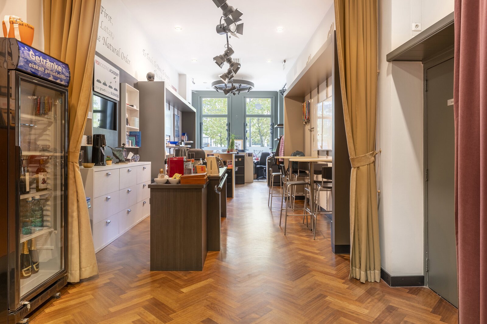 Het herenhuis is verdeeld over meerdere verdiepingen en biedt verrassend veel ruimte en mogelijkheden. Op het gelijkvloers bevindt zich een royale kantoorruimte met aparte ingang, ideaal voor een vrij beroep, praktijk of atelier aan huis. Daarnaast is er ook een ruime garage, een absolute troef in het centrum van de stad.