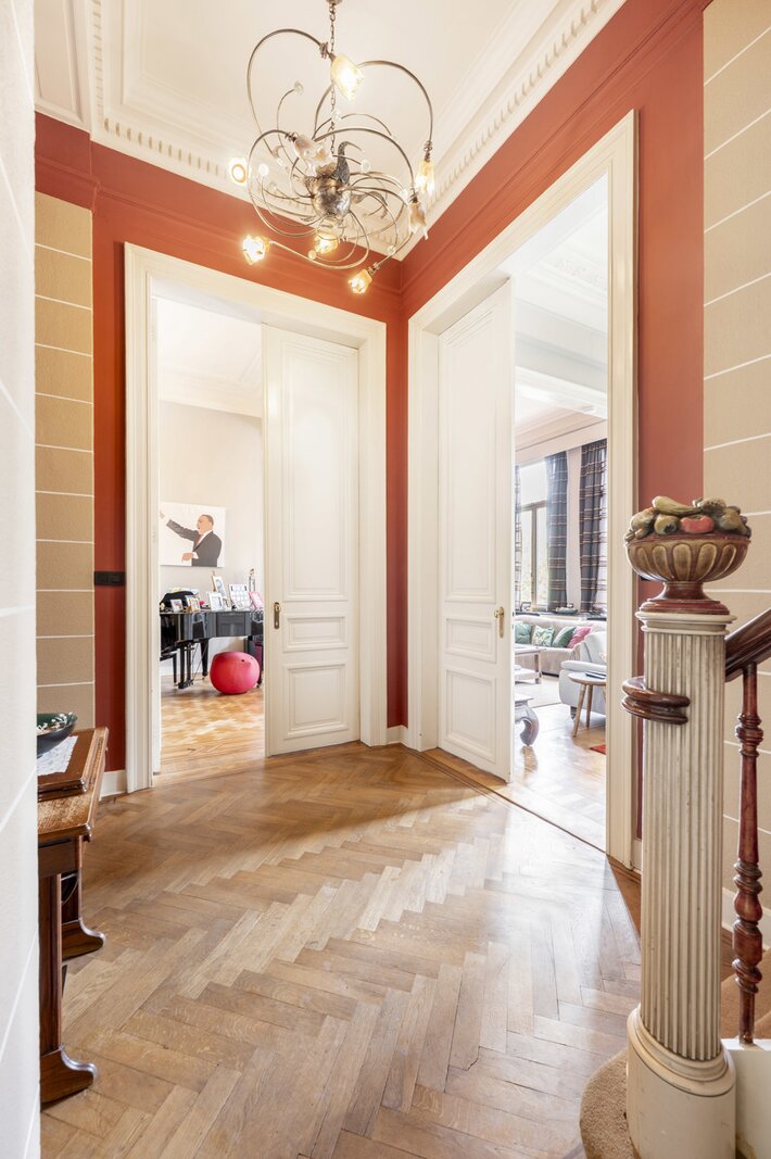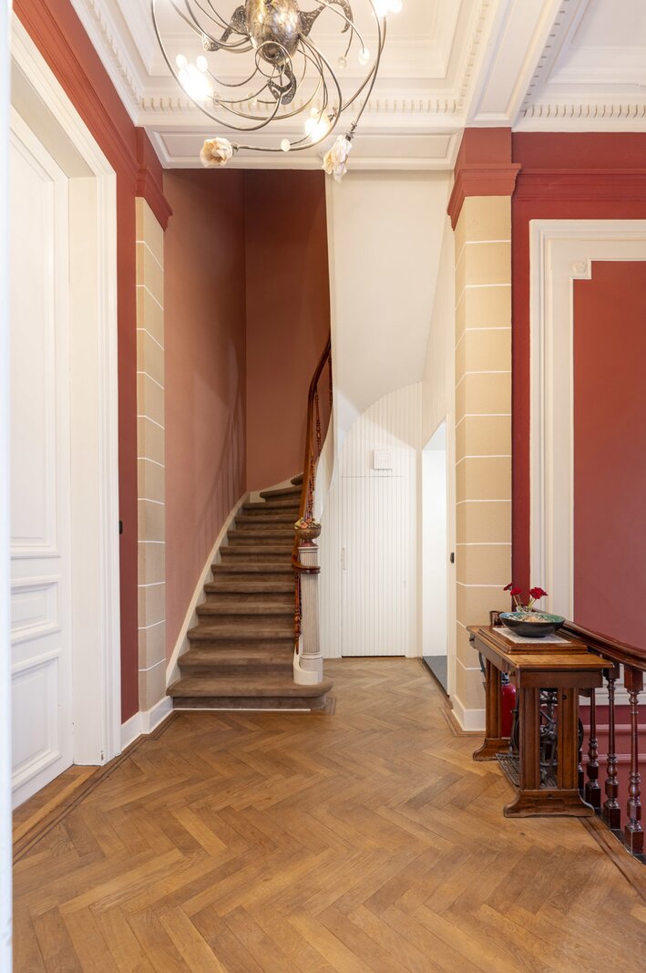 In het hart van Antwerpen, in een brede straat, bevindt zich dit statige herenhuis met een gevelbreedte van 10 m dat de perfecte balans biedt tussen wonen, werken en genieten. De woning straalt authenticiteit uit vanaf het eerste moment: hoge plafonds, sierlijke moulures, originele parketvloeren en klassieke schouwen herinneren aan de rijke geschiedenis van het pand, terwijl zorgvuldig uitgevoerde renovaties het comfort van vandaag garanderen.