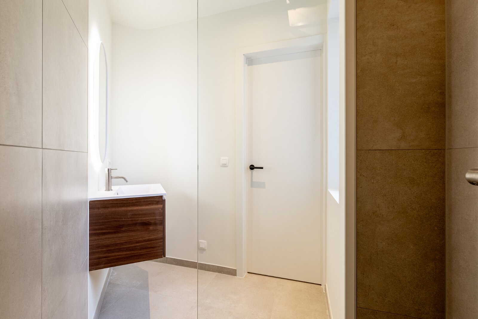 Bij binnenkomst verwelkomt de ruime inkomhal u, voorzien van een handige vestiaire en een apart gastentoilet. Lichtrijke leefruimte, met een gezellige zithoek en eethoek. De open keuken is modern ingericht en heeft directe toegang tot een aangenaam buitenterras. Aansluitend aan de keuken bevindt zich een praktische berging. Het appartement beschikt over 2 slaapkamers, elk voorzien van een ensuite badkamer.