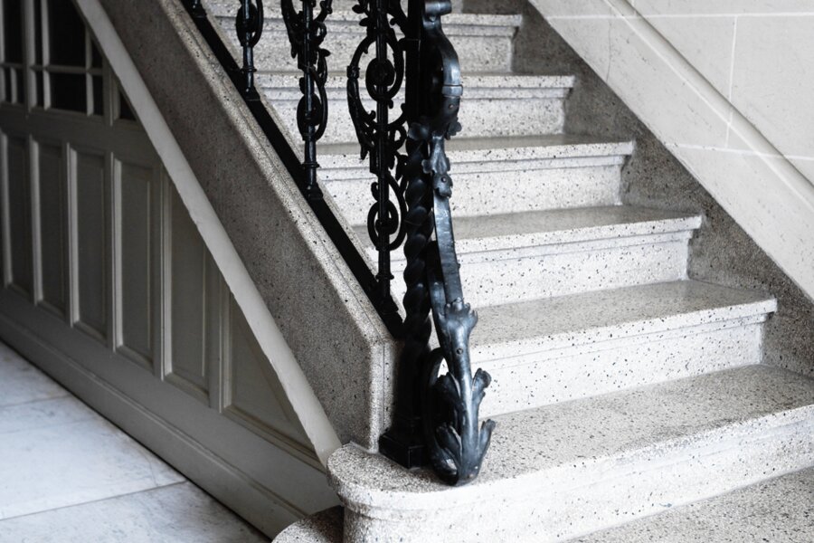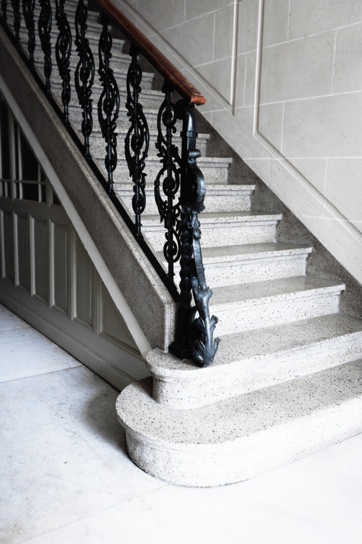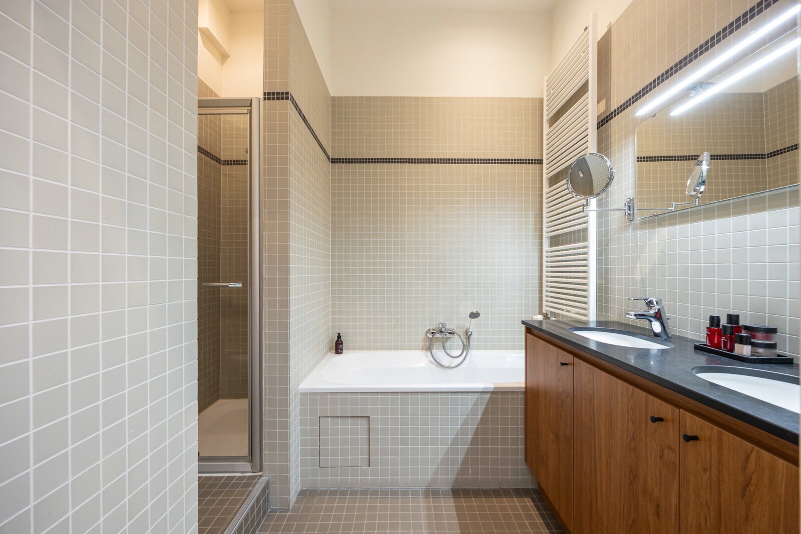 In het neoclassicistische pand ‘Résidence des Arts’ uit 1873 word je verwelkomd door een prestigieuze marmeren inkomhal, compleet met een trap en lift.