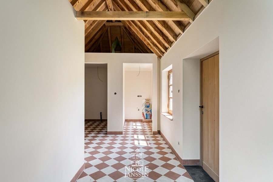 - Praktische wasplaats/berging met authentieke vloer en houten dakconstructie