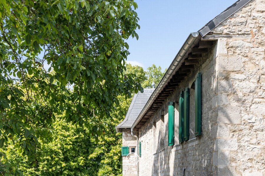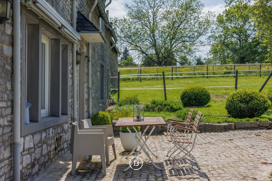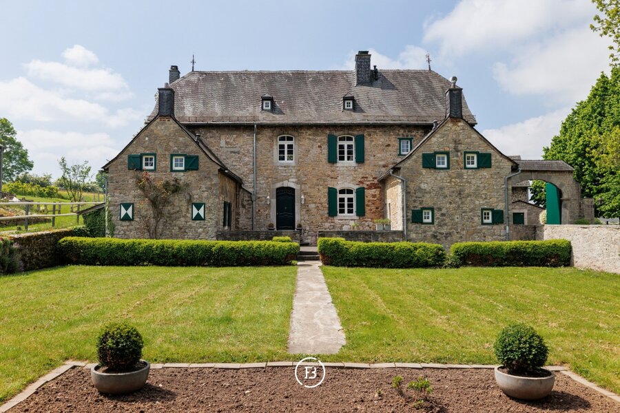 Gelegen in het mooie Raeren, op slechts enkele minuten van Eupen en Aken, vinden we ‘Haus Bergscheid’, een schitterende historische woning volledig opgetrokken uit blauwsteen. De woning werd recent volledig gerenoveerd naar hedendaagse normen en waarden met behoud van zijn charmante authenticiteit. De hoofdwoning bestaat uit een ruime inkomhal, apart bureel, leefruimte met open haard en een aparte tv hoek. In de andere vleugel van de woning vinden we de ruime eetplaats met toegang naar de keuken en grote kelder die dienst doet als wasplaats en berging. Boven bevinden zich drie ruime slaapkamers met twee badkamers, waarvan één master met ensuite badkamer. Achterliggend bijgebouw doet op heden dienst als zomerhuis, dit met opnieuw een leefruimte, keuken en twee slaapkamers met aparte badkamer. De woning is omringd door zijn prachtige tuin op heden voorzien voor de twee paarden die alsook beide hun stal hebben. Een prachtige woning met magnifieke verzichten waar het heerlijk genieten is van de natuur.