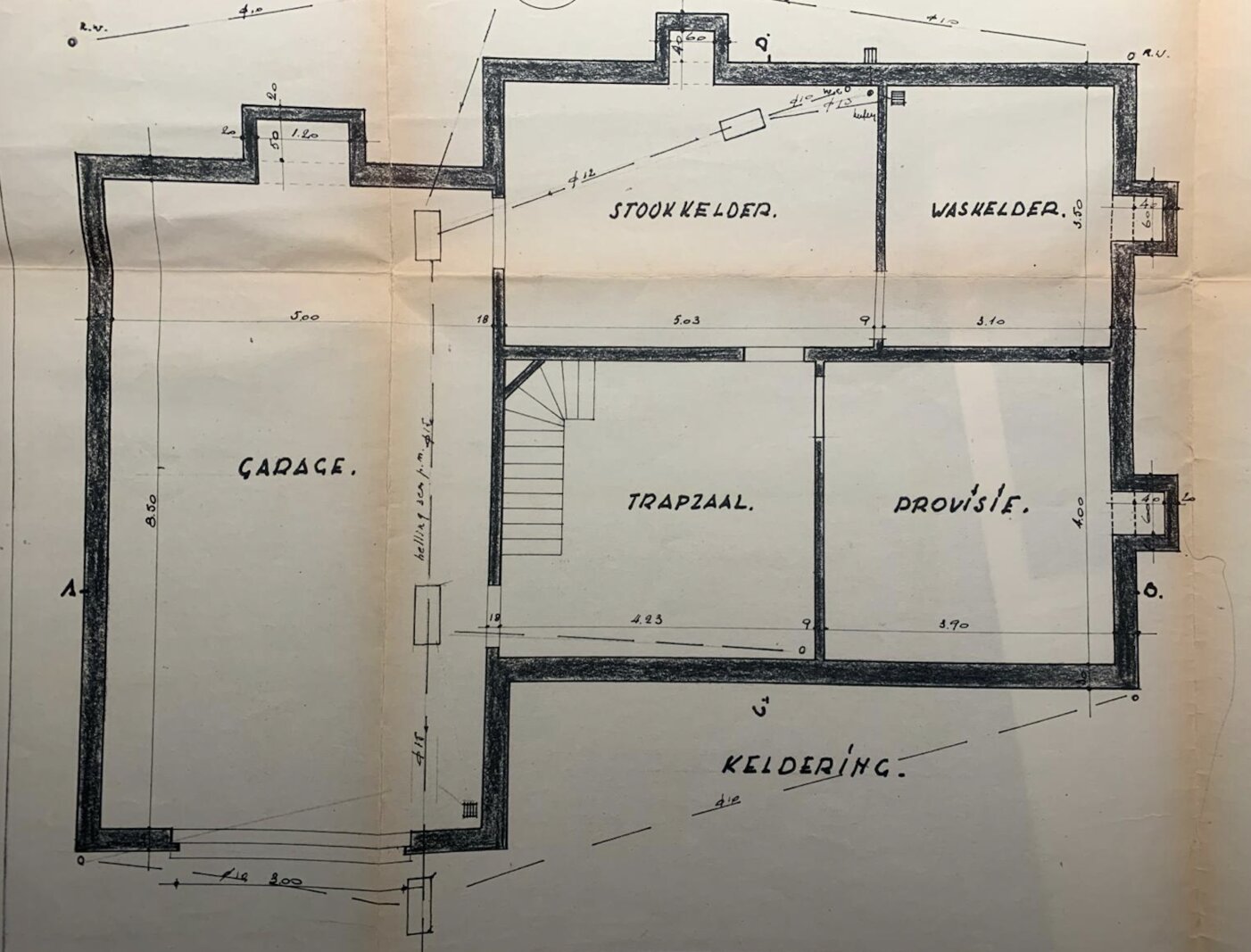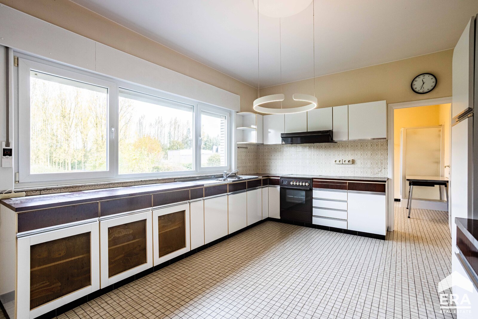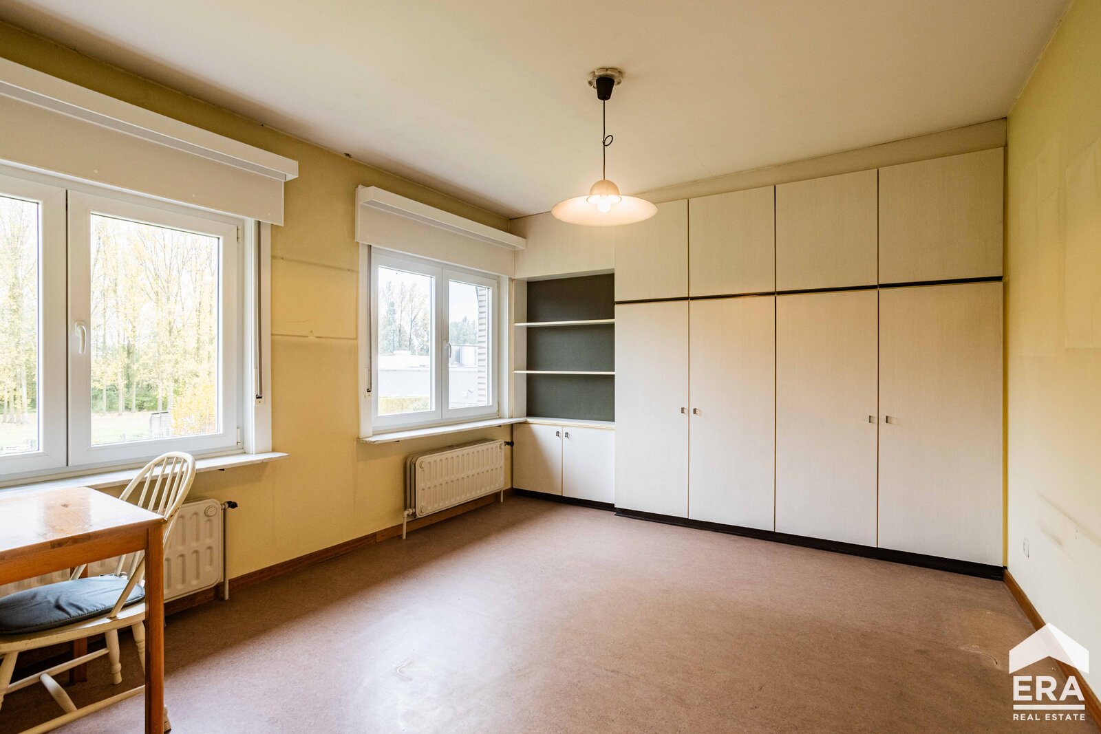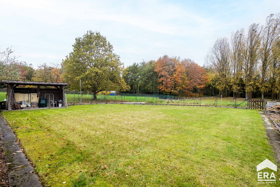 De woning is volledig onderkelderd met meerdere bergruimtes en een dubbele garage met automatische poort. Op het gelijkvloers vind je een ruime inkomhal met apart toilet, een lichtrijke leefruimte met parketvloer en uitzicht op de tuin, een grote keuken (te vernieuwen naar eigen smaak), een wasplaats/bijkeuken en een bureauruimte of extra slaapkamer. De eerste verdieping biedt een overloop, vier royale slaapkamers en een badkamer.
