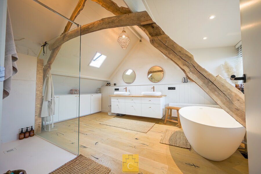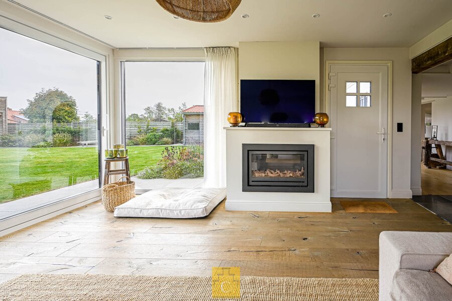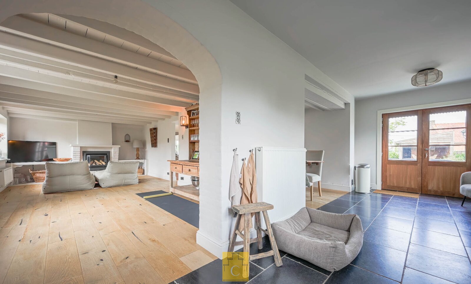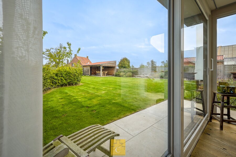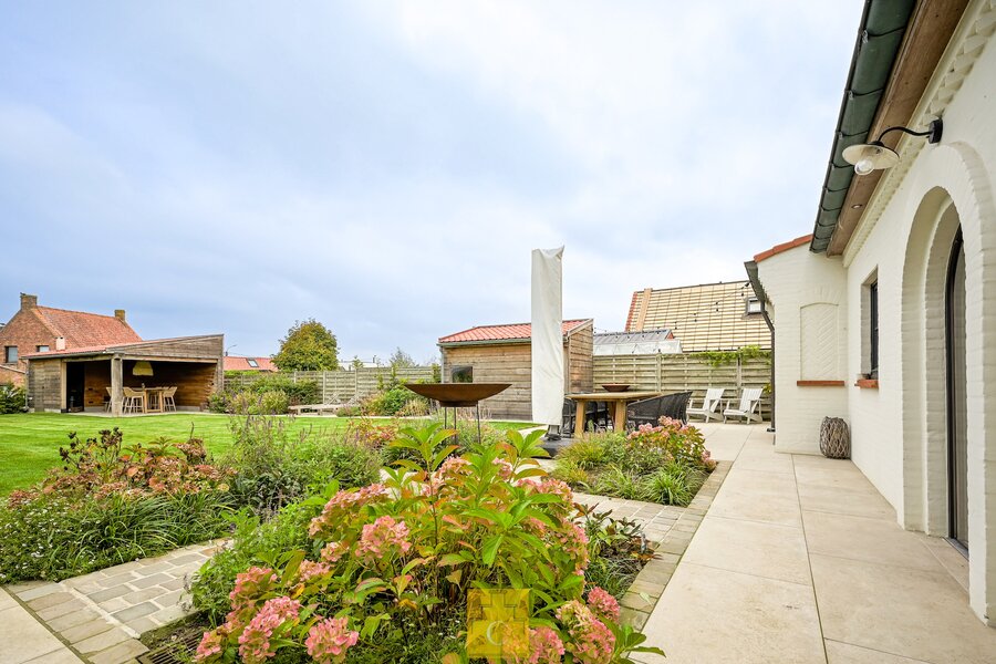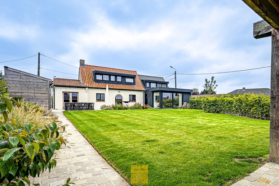 In een rustige, landelijke straat in Ichtegem bevindt zich deze recent gerenoveerde gezinswoning die charme en comfort perfect combineert. De woning werd volledig gestript en heringericht in een warme landelijke stijl met eigentijdse accenten en diverse leuke eye-catchers. Kwalitatieve natuurstenen tegels en parketvloeren, stijlvolle lambriseringen en zichtbare balken zorgen voor een unieke sfeer. Let ook op de grote glaspartijen die een perfect licht in de woning brengen. Een cosy nest op een heel rustige locatie. Binnen geniet je van twee heel mooie leefruimtes met gashaard en een ruime eethoek. De praktische keuken met blauwstenen werkblad sluit mooi aan op de leefruimtes en het terras, wat zorgt voor een heerlijk binnen-buitenleven. Op het gelijkvloers vind je bovendien een extra kamer die perfect kan dienen als slaapkamer, bureau of praktijkruimte. Boven bevinden zich twee slaapkamers – open tot in de nok met zichtbaar dakgebinte en een royale badkamer met inloopdouche, vrijstaand ovalen bad en dubbele lavabo. De volledig aangelegde en omheinde tuin met diverse terrassen, gras en plantenperken en de praktische – maar ook heel mooie – buitenberging met overdekt terras/porche is een echt paradijs — ideaal voor gezinnen met kinderen of huisdieren. Er is parking voor 3 à 4 wagens. De woning is bovendien heel rustig gelegen nabij het Wijnendalebos. Wandelaars en fietsers in de straat, weinig verkeer. 10 Minuten rijden van Torhout, een half uurtje van Brugge, een half uurtje van de kust, winkels en supermarkt op 7 minuten. Een karaktervolle, instapklare woning waar rust, charme en comfort samenkomen. Niet gelegen in een risicozone voor overstromingen. P-score : A. G-score : A. Deze woning wordt u aangeboden met een richtprijs. Elk voorstel, hetzij lager, gelijk aan of hoger dan deze richtprijs zal aan de eigenaars voorgelegd worden, die finaal zullen beslissen op welk voorstel ze wensen in te gaan.