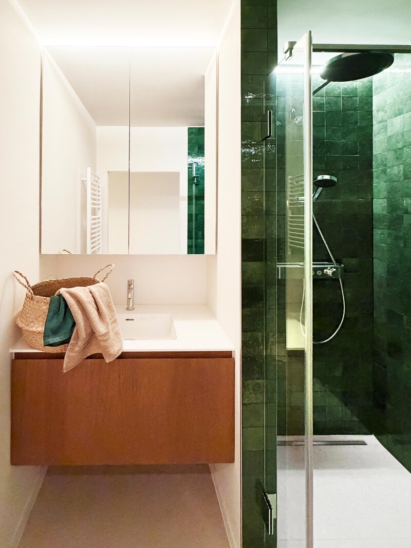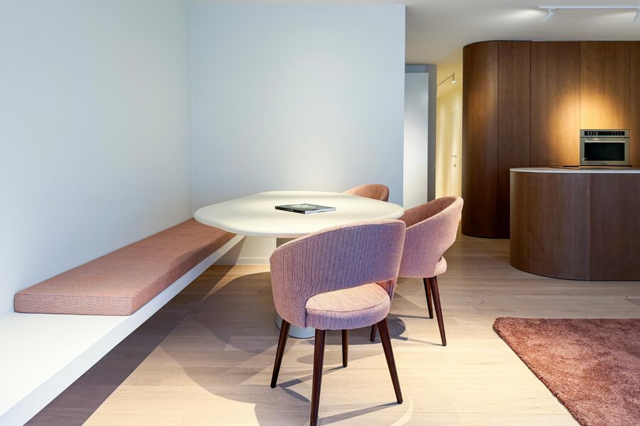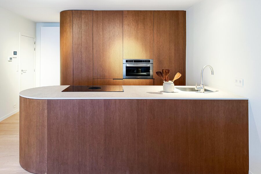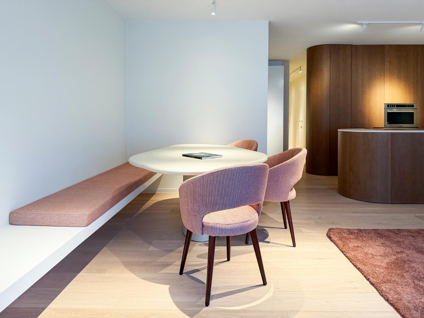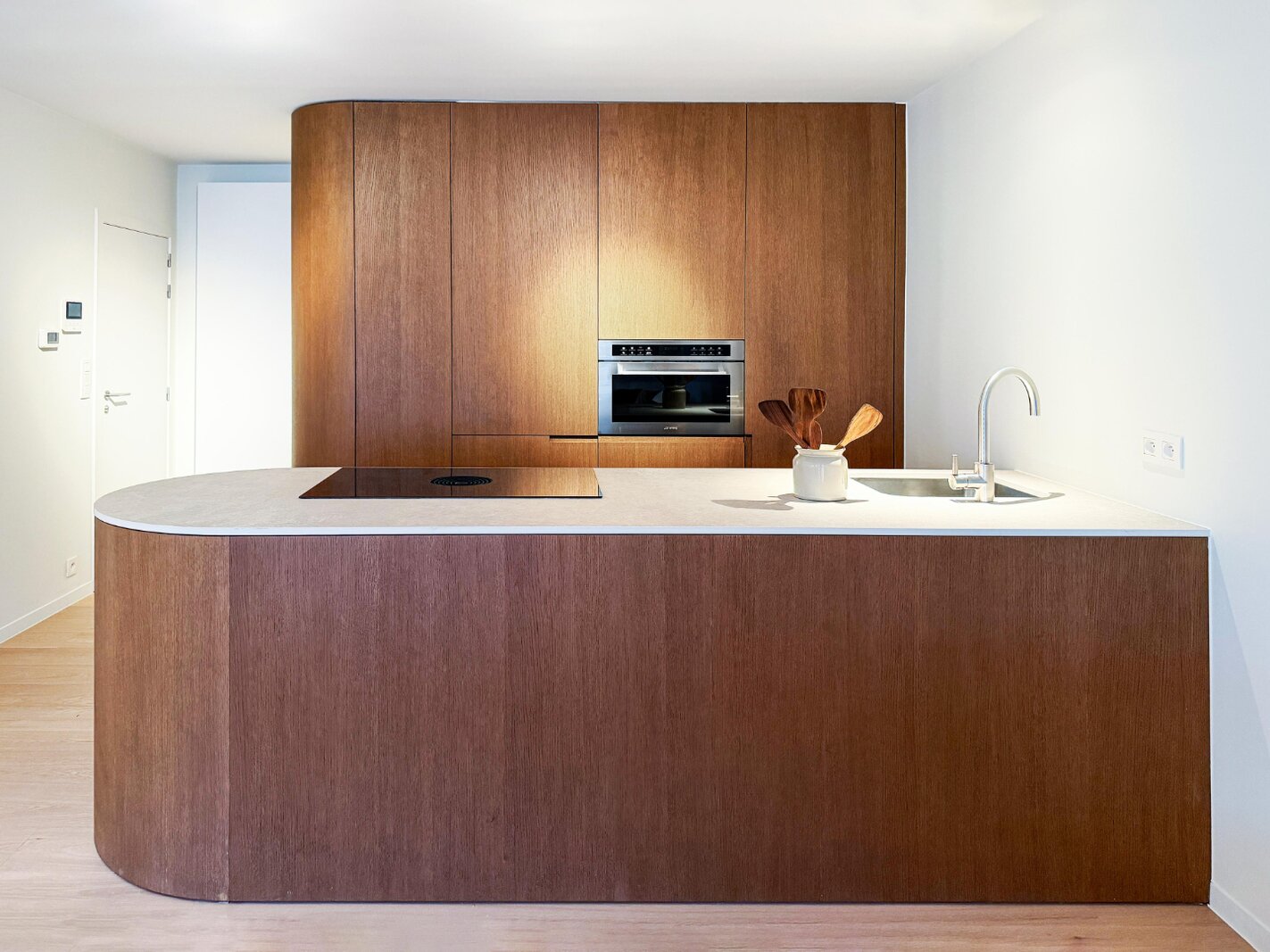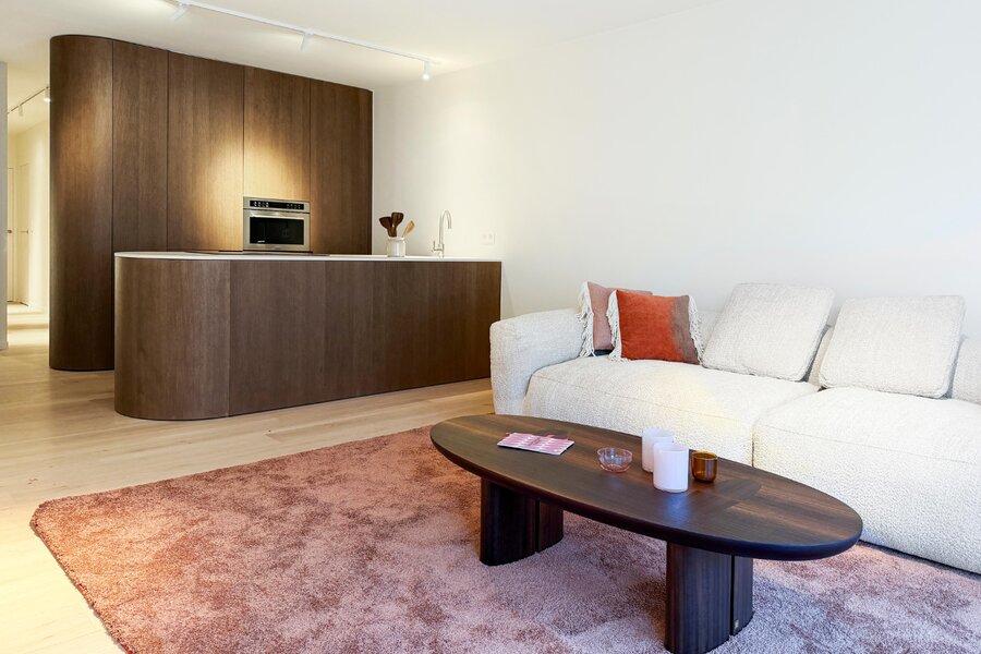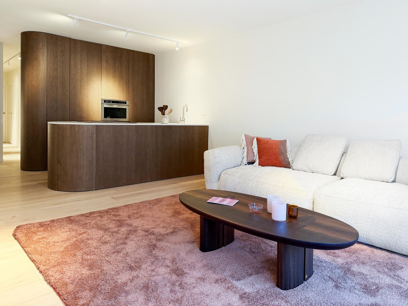 Het appartement onderging een volledige en hoogwaardige renovatie, waarbij kwaliteit, verfijning en tijdloos design centraal staan. De harmonieuze afwerking en het gebruik van premium materialen zorgen voor een elegante en warme woonbeleving.