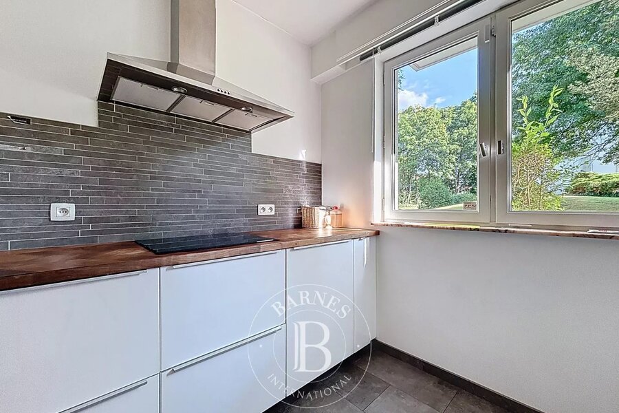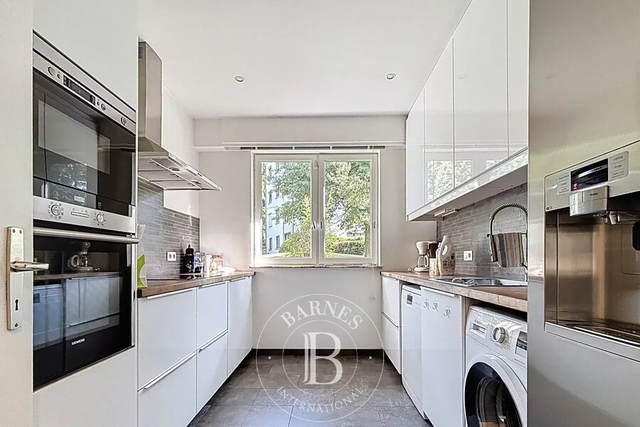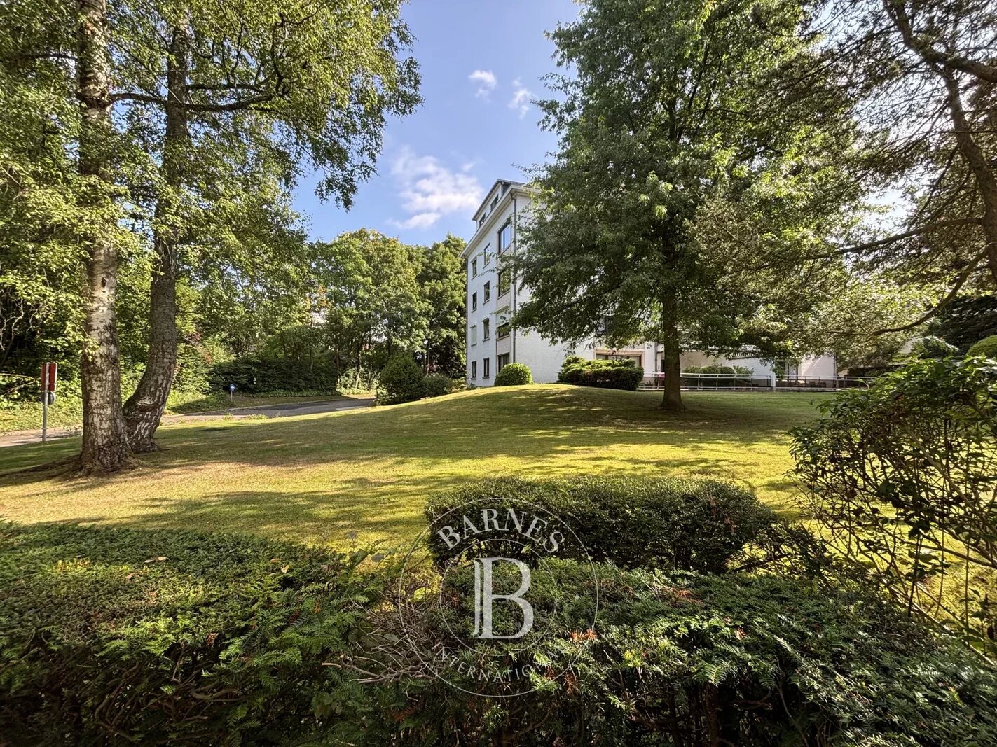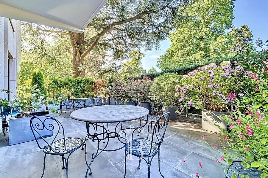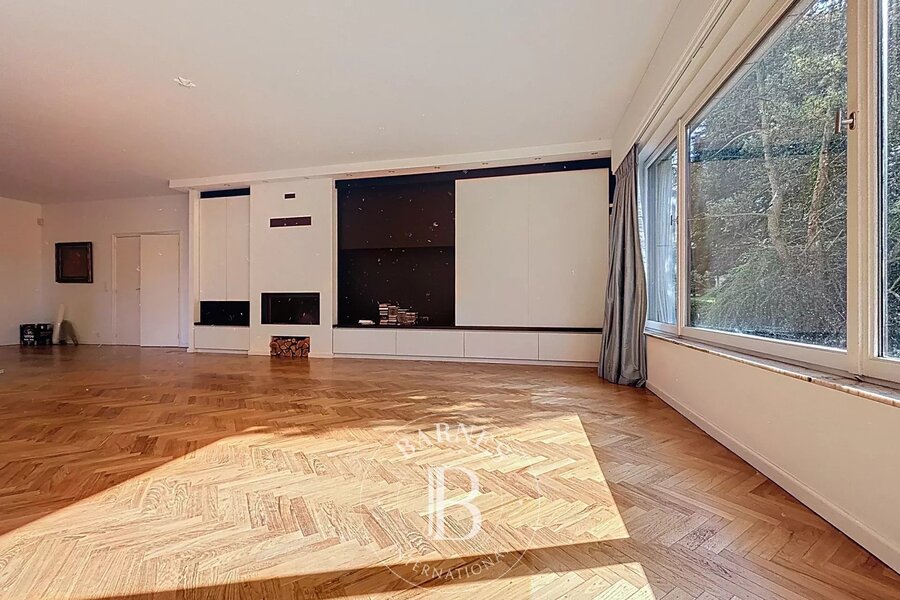 Kom en ontdek dit zeer aangename, lumineus appartement van 155 m² met een groot terras op het zuidwesten van meer dan 50 m². Het is omgeven door een prachtig aangelegd terrein met eeuwenoude bomen. Het bestaat uit een ruime inkomhal, een vestiaire en gastentoilet, een ingerichte keuken, een lichte woonkamer (met open haard) die toegang geeft tot het aangename terras (gedeeltelijk overdekt). Dan volgen een nachthal en 3 slaapkamers, een badkamer (met WC) en een douchekamer. Recente gemeenschappelijke condensatieketel. De flat heeft ook een kelder en een parkeerplaats in het gebouw. EPC D. 188 kWhEP/m²/jaar - 155 m² volgens EPB.