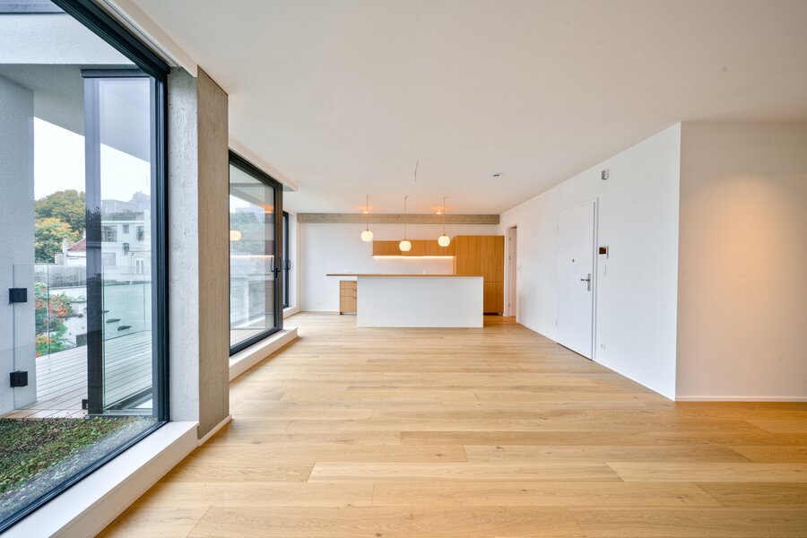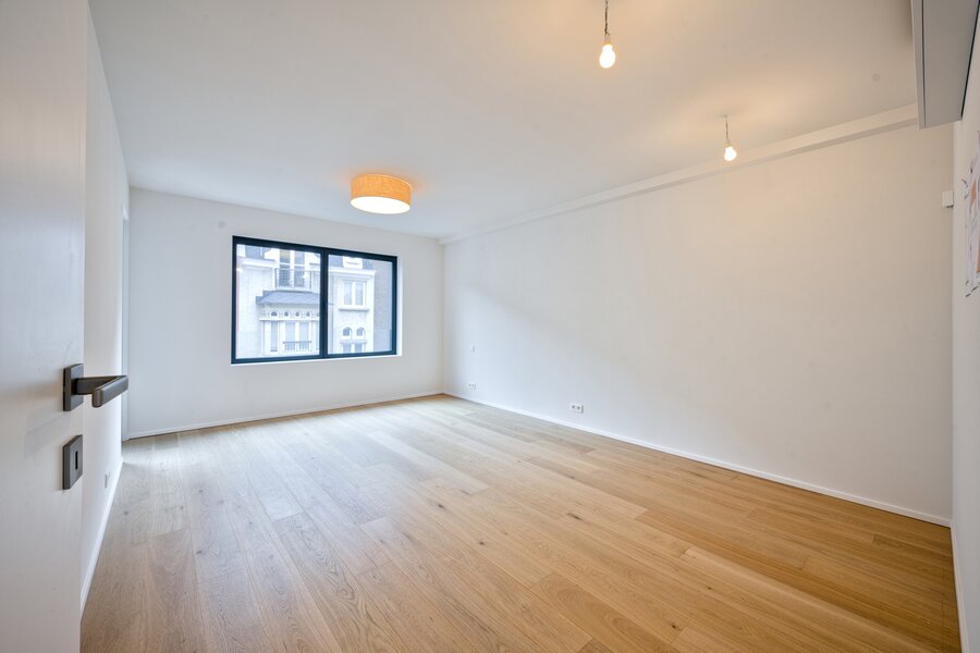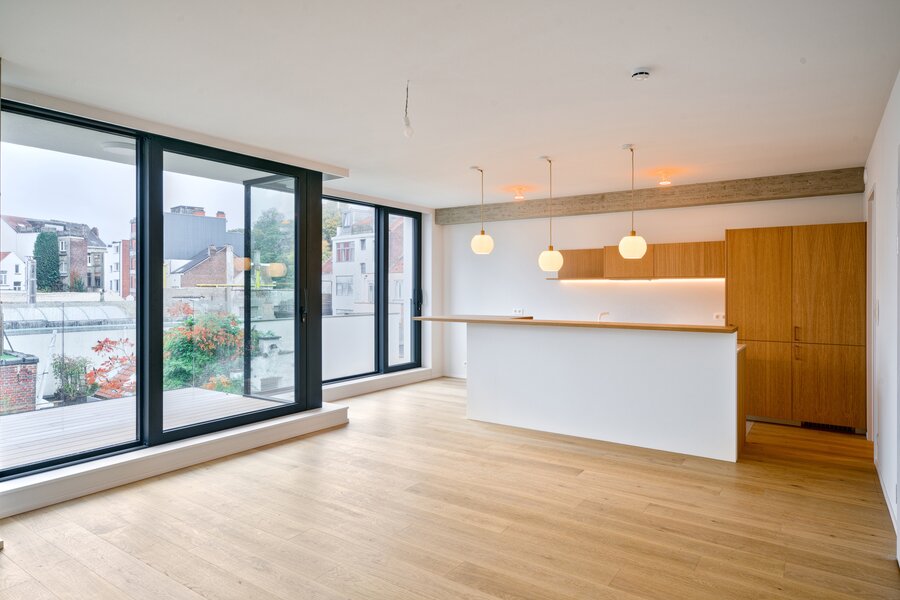 Met een woonoppervlakte van ± 118,5 m² en een zonnig terras van ± 6 m² biedt het lichte ontvangstruimtes, een volledig uitgeruste keuken, twee slaapkamers en twee doucheruimtes. Lift, fietsenstalling en hoogwaardige afwerking. EPB in aanvraag – registratierechten 12,5%.