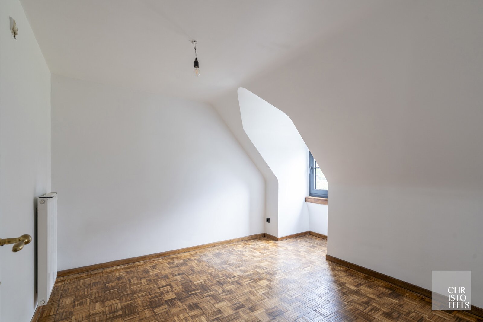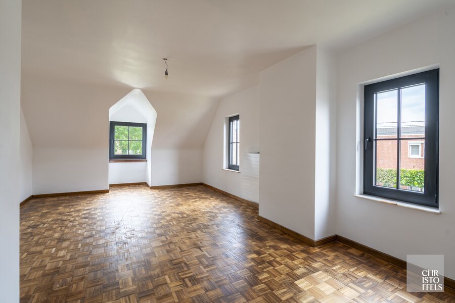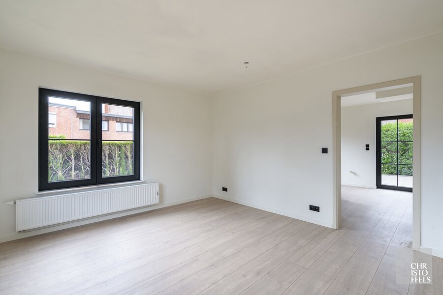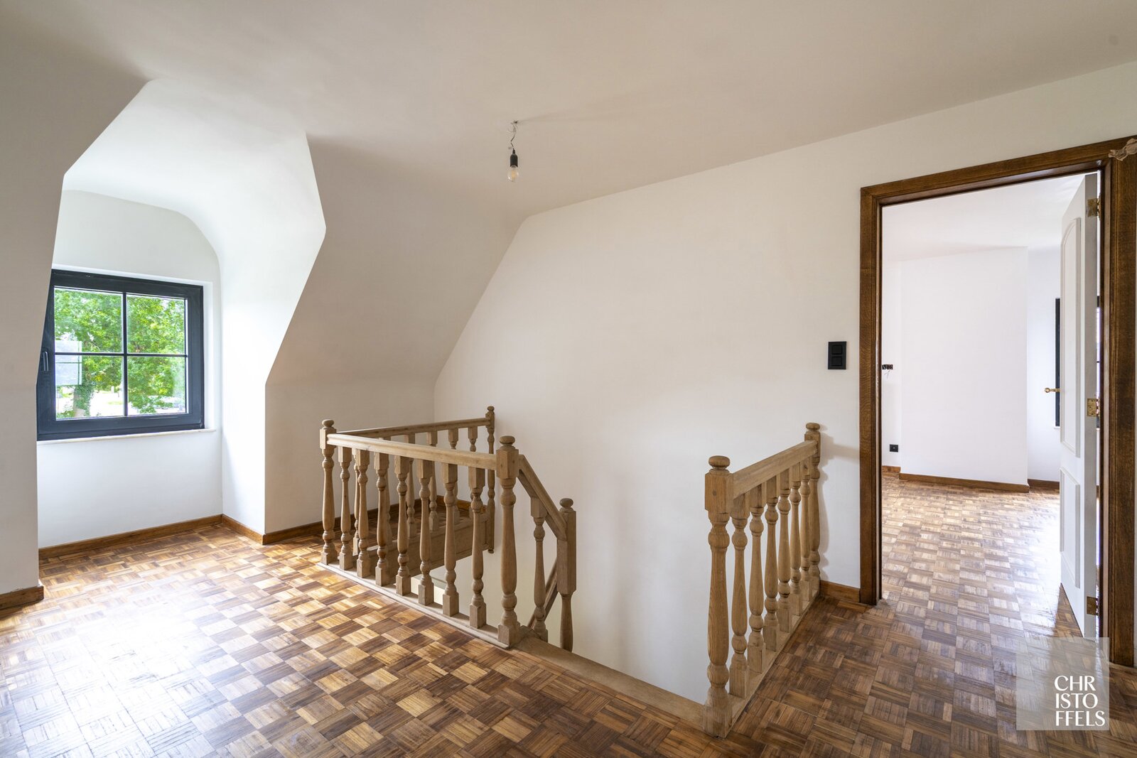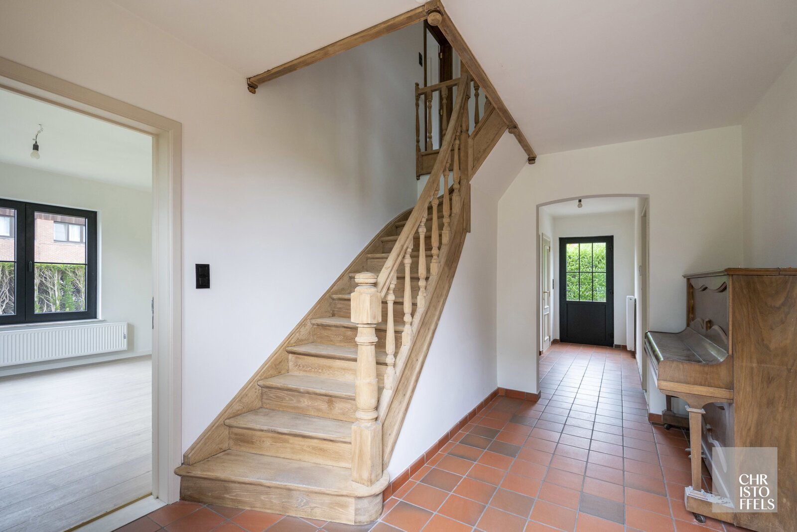 Op het gelijkvloers komt u binnen via een ruime inkomhal met vestiairehoek en gastentoilet. Er is een authentieke terracottavloer aanwezig. De aangename leefruimtes bestaan uit een gezellige woonkamer met haardcassette en een eetkamer, die samen zorgen voor een open en luchtige indeling. Aansluitend bevindt zich een veranda die veel licht binnenbrengt en uitkijkt op de tuin. De keuken is uitgerust met kwalitatieve inbouwtoestellen en biedt voldoende ruimte voor comfortabel koken. Op het gelijkvloers bevinden zich ook, naar wens, één of twee slaapkamers of praktijk-/kantoorruimtes met aparte toegang.