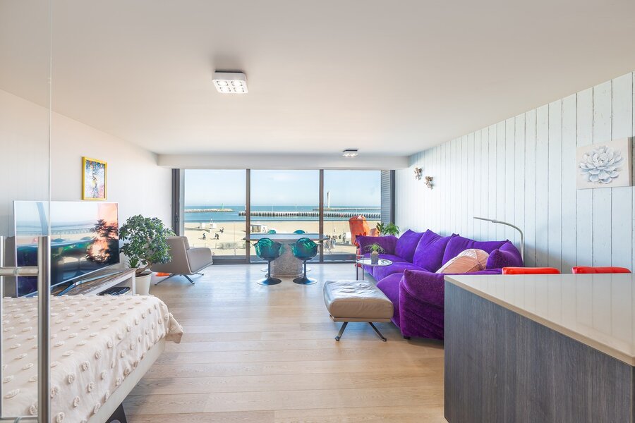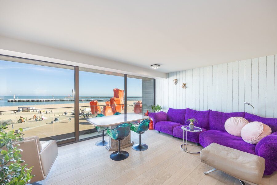 - Ruime leefruimte met grote raampartijen en terras met frontaal zeezicht
