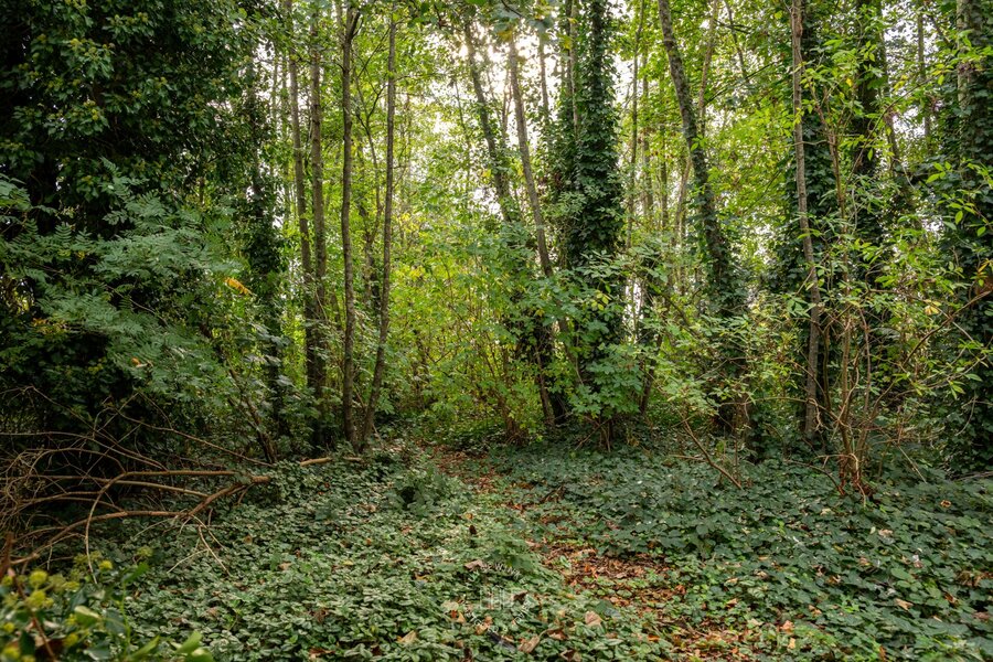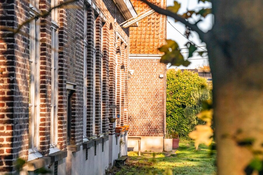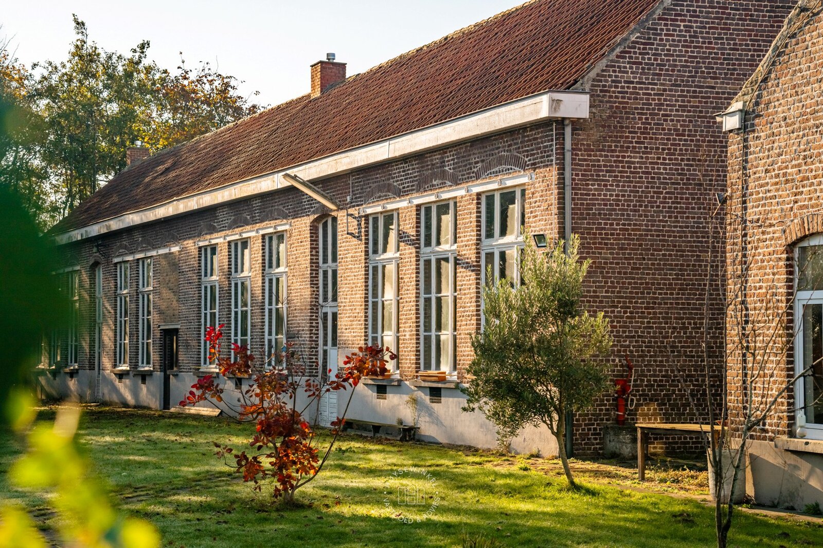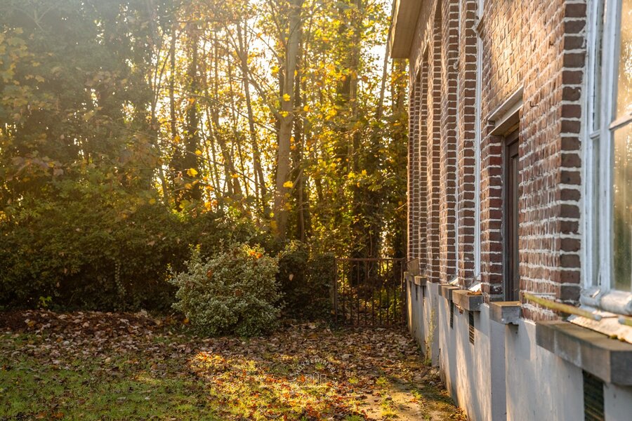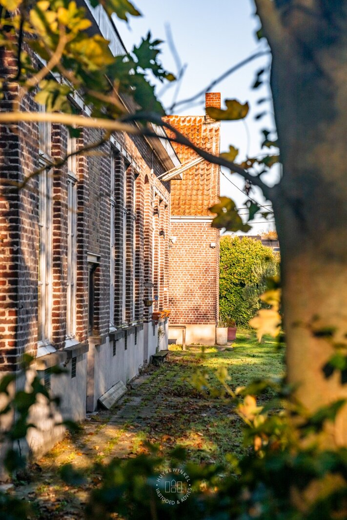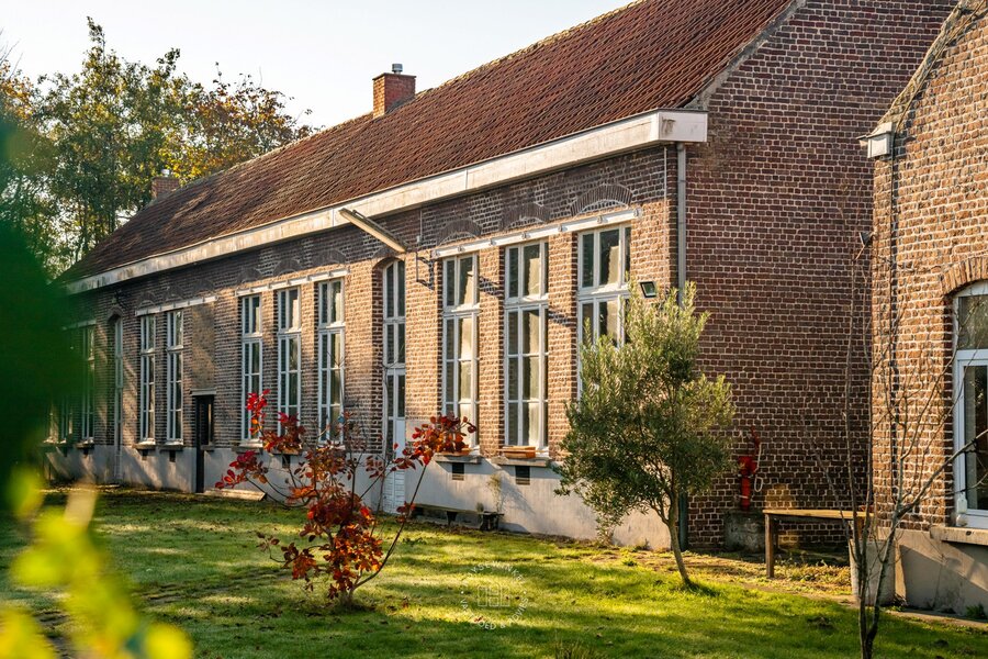 De vroegere speelkoer is vandaag een majestueuze tuin, die achteraan overgaat in een klein bosje. Een natuurlijke overgang die rust, privacy en een uniek gevoel van openheid creëert. Een charmant detail dat de geschiedenis tastbaar houdt, is de oude schoolbel die nog steeds aan de gevel van de klaslokalen hangt.