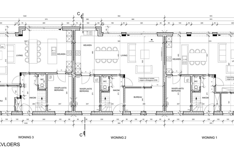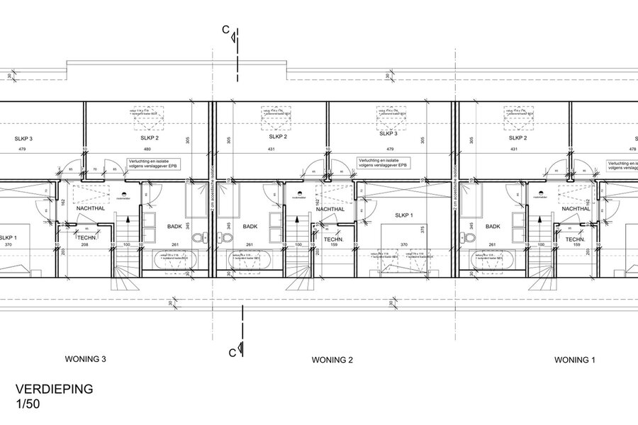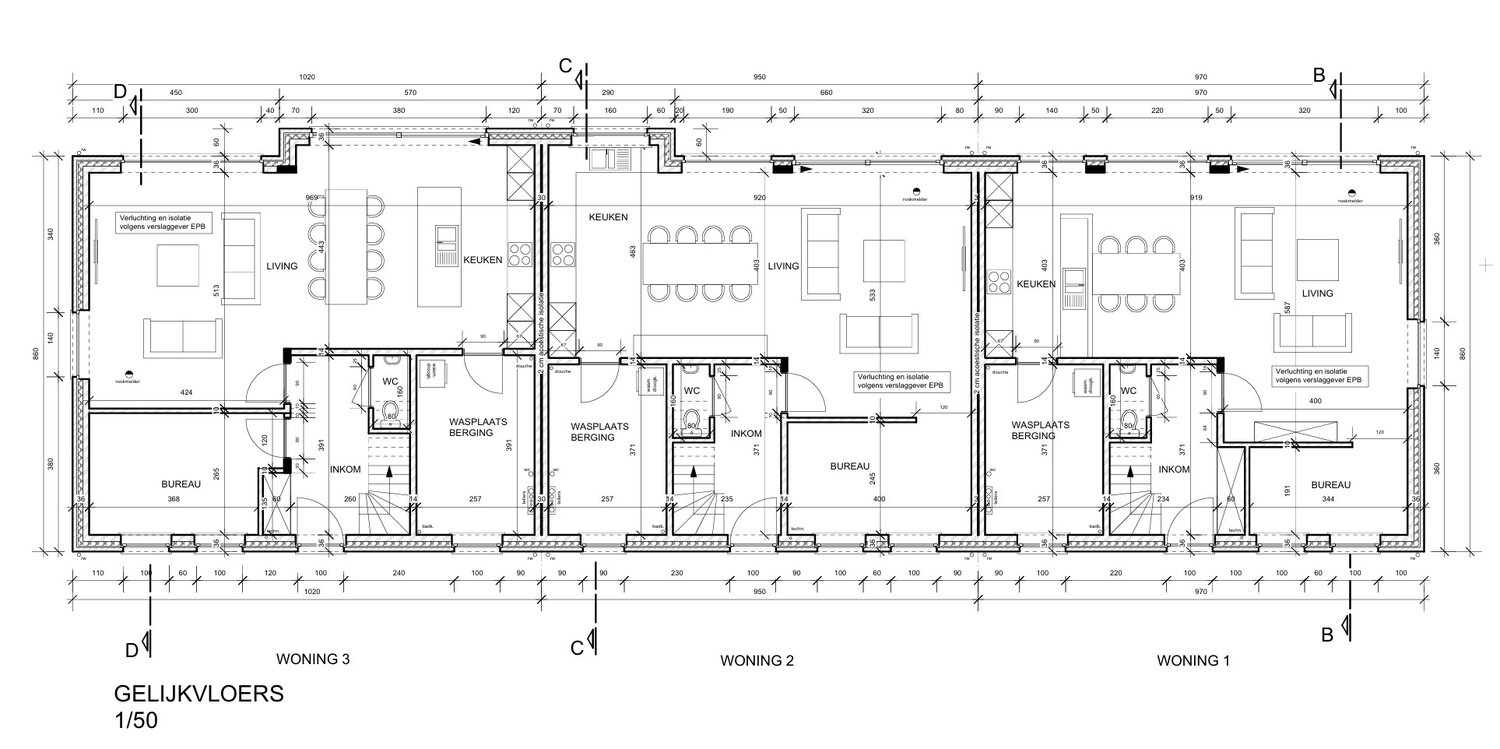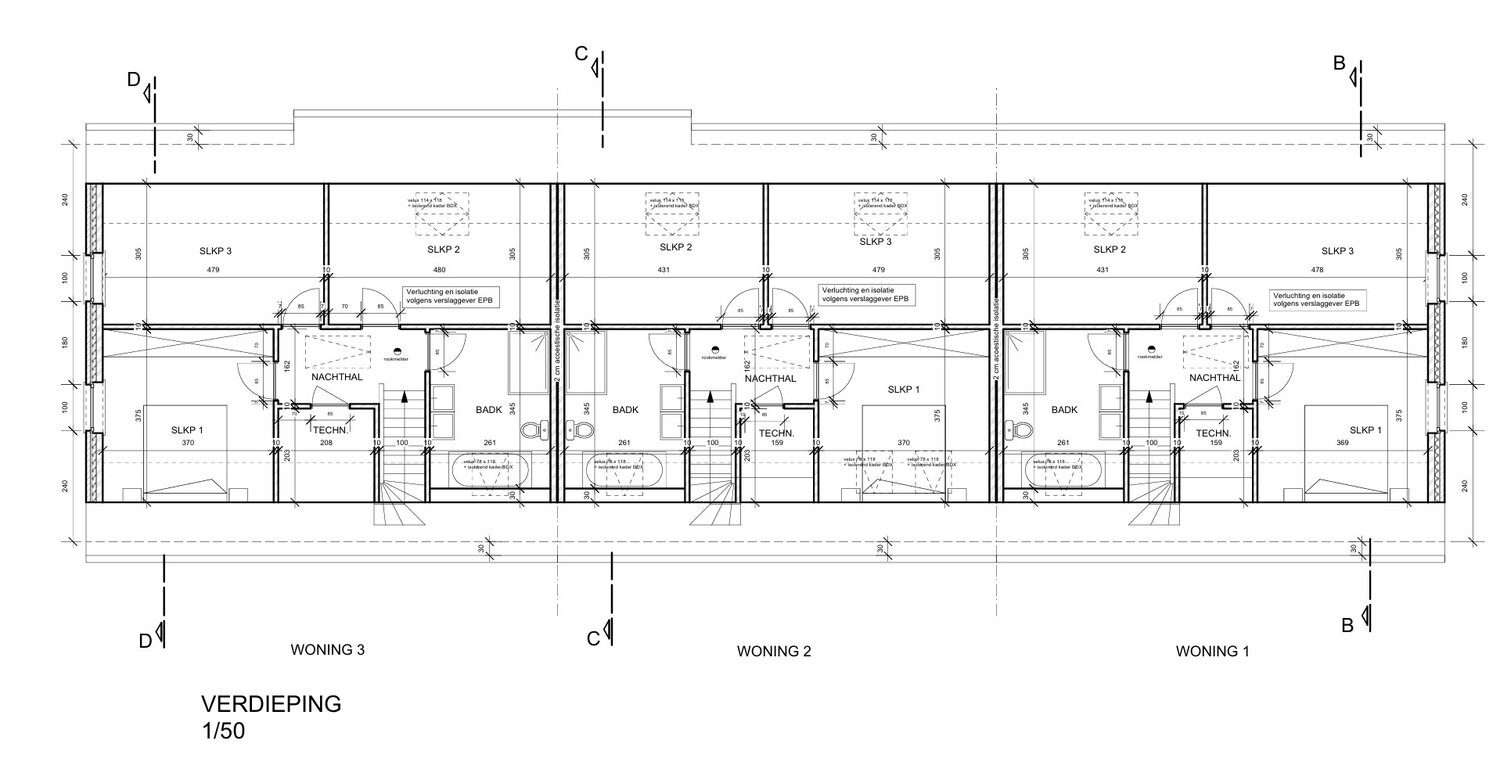 Mooi en centraal gelegen project voor het bouwen van een 3 woningen (2 half-open bebouwing en een gesloten).