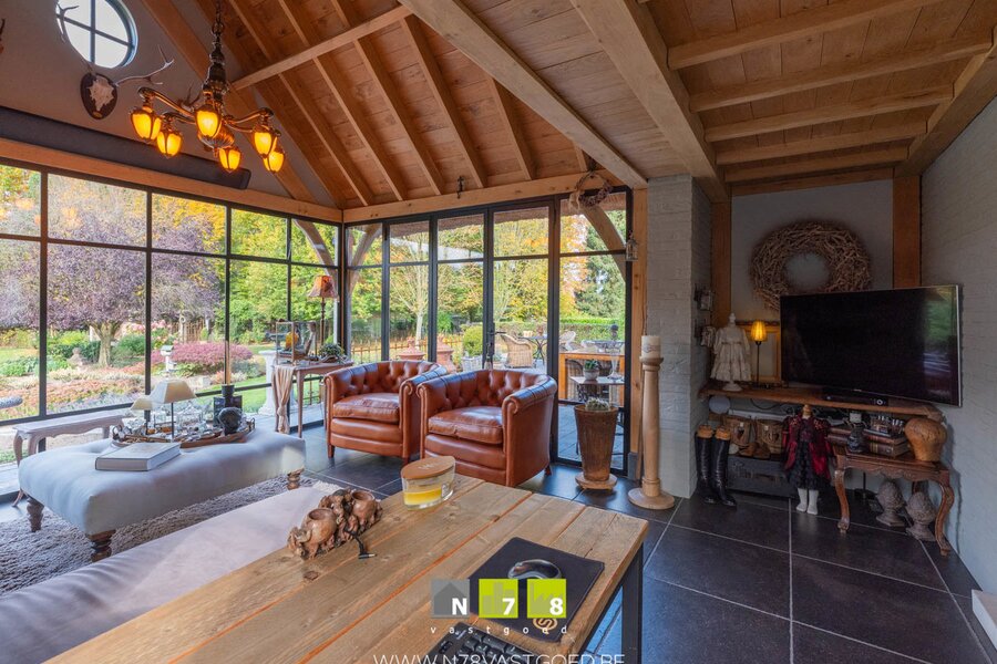 - Tuinkamer met panoramisch zicht op de tuin (2017), volledig ingericht met airco en heater voor gebruik in elk seizoen.