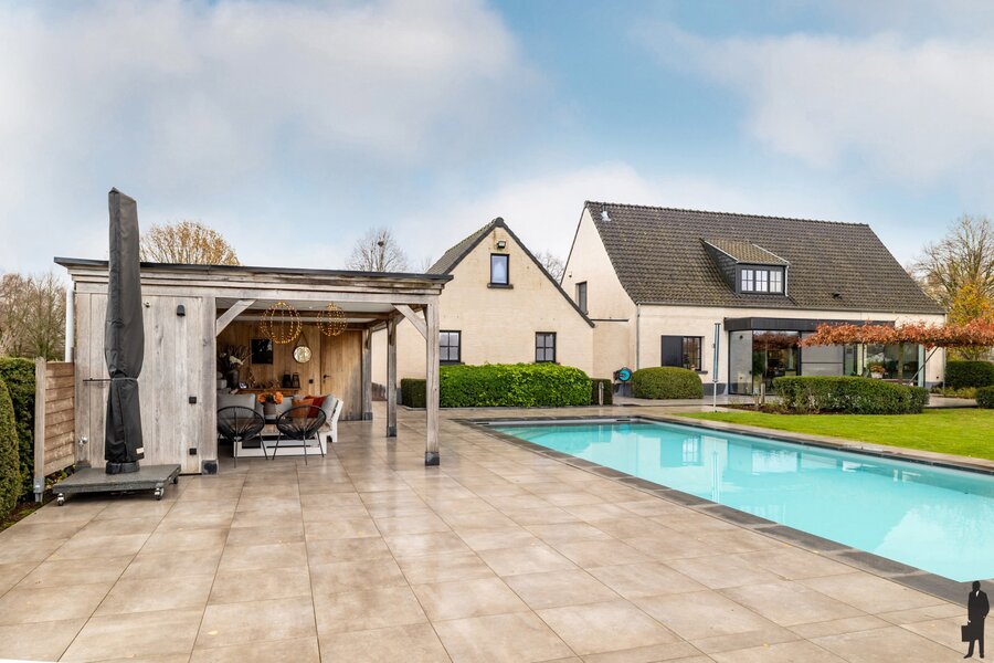 Verwarmd zwembad met stijlvol poolhouse en uitgebreide terrassen;