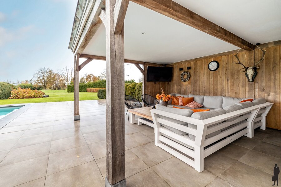 De fraai aangelegde tuin van ca. 1,5 hectare is ontworpen om het buitenleven maximaal te benutten. Het verwarmde zwembad met poolhouse en overkapping maakt deze plek ideaal voor ontspanning én entertainment, terwijl de paardenweide extra lifestylewaarde toevoegt.