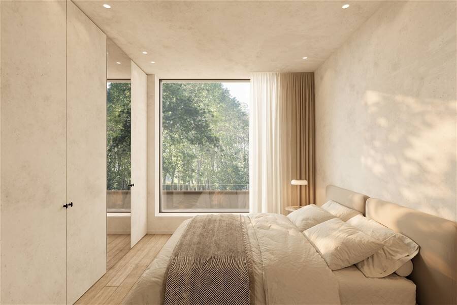 Het dynamische Gentse architectenbureau CAS tekent voor de toparchitectuur. Met hun kenmerkende minimalistische vormtaal creëerden zij eigentijdse woningen die middels een slimme inplanting de maximale privacy genieten.