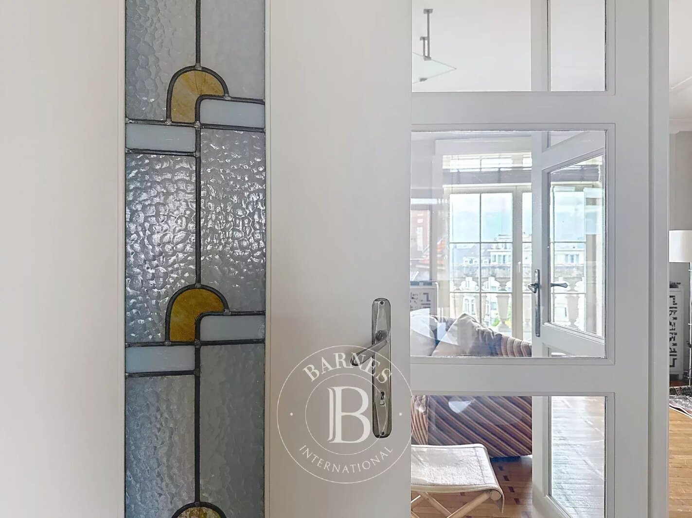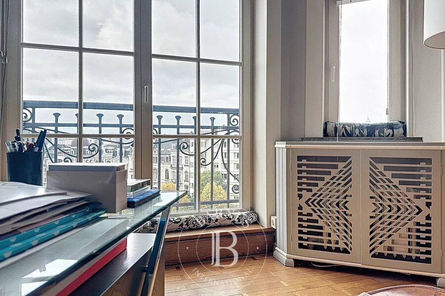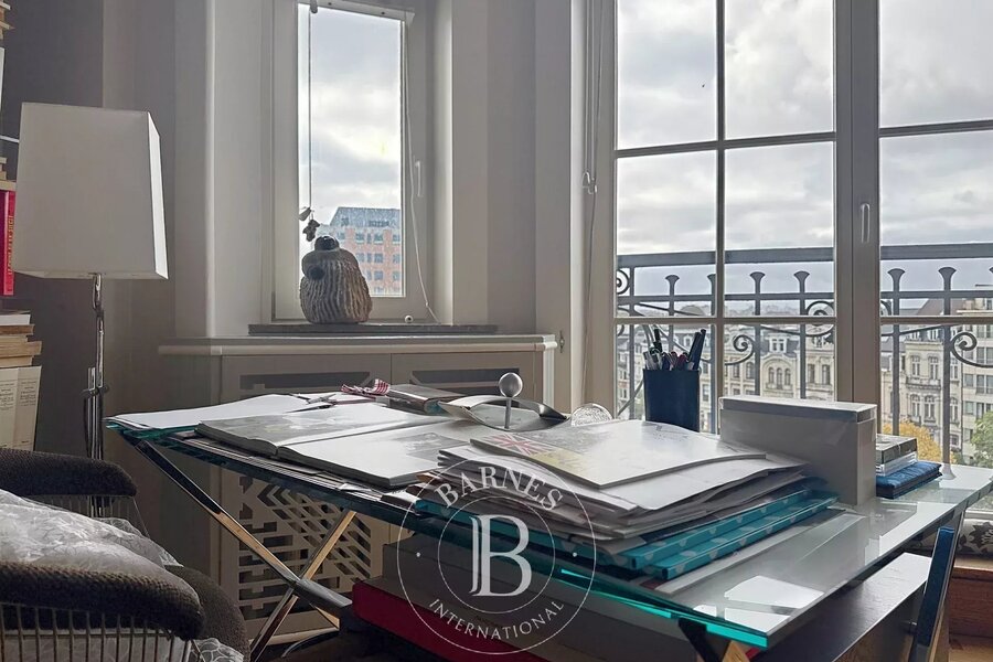 Barnes stelt u op de vijfde verdieping van een prestigieus gebouw uit 1929 dit prachtige appartement van ± 245 m² voor, met royale volumes en tijdloze charme. Perfect gelegen in een van de meest gegeerde wijken van Brussel, geniet het van een uitzonderlijk uitzicht vanuit de ruime, lichte woonkamer.