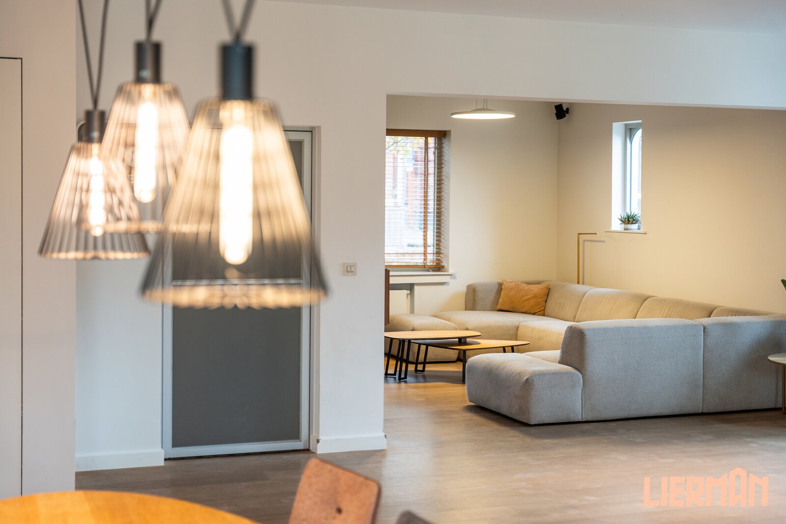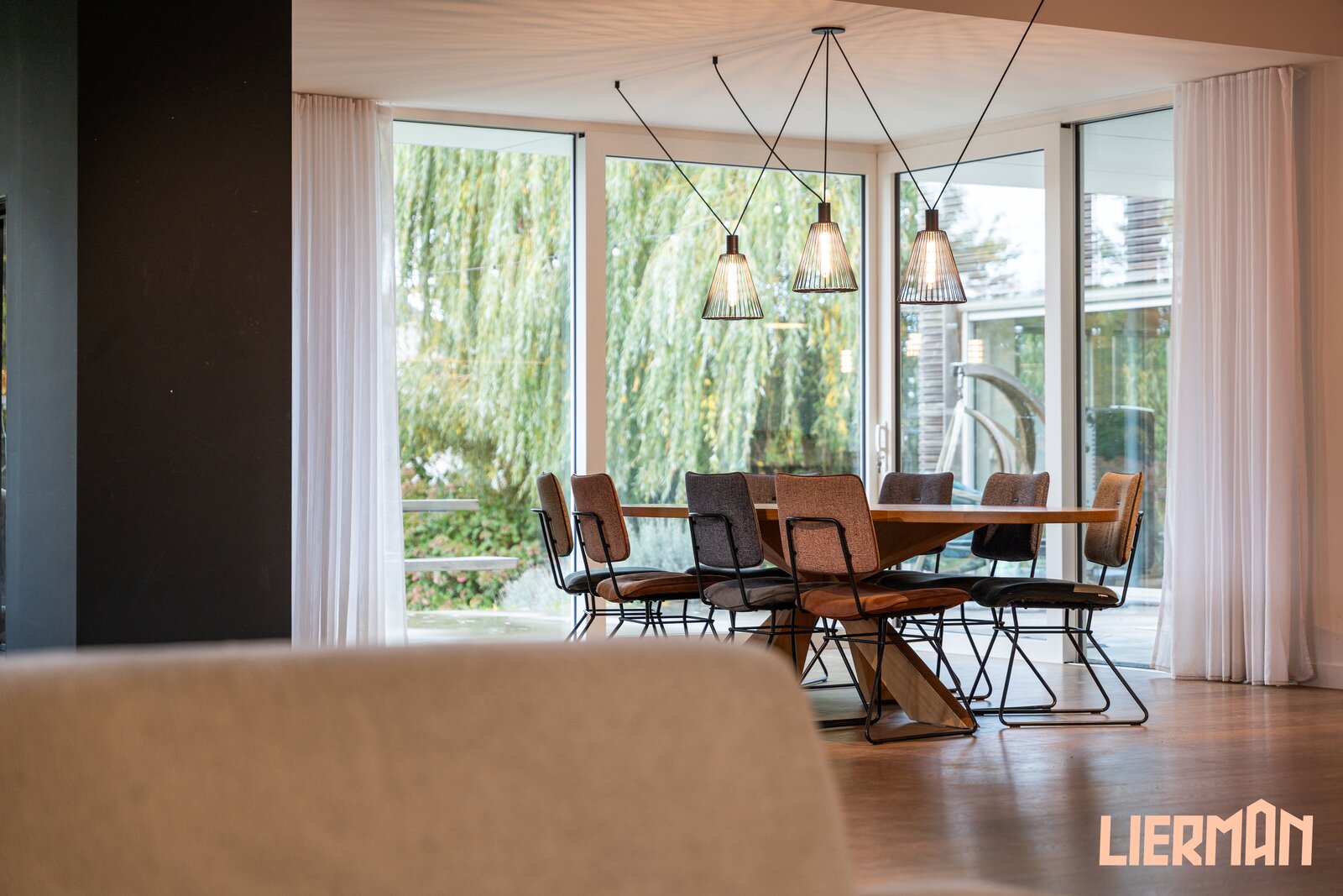 De ruime leefruimte vormt het kloppend hart van de woning en staat in directe verbinding met de prachtig aangelegde tuin. Binnen en buiten vloeien hier naadloos in elkaar over, wat zorgt voor een sfeer van rust en exclusiviteit.