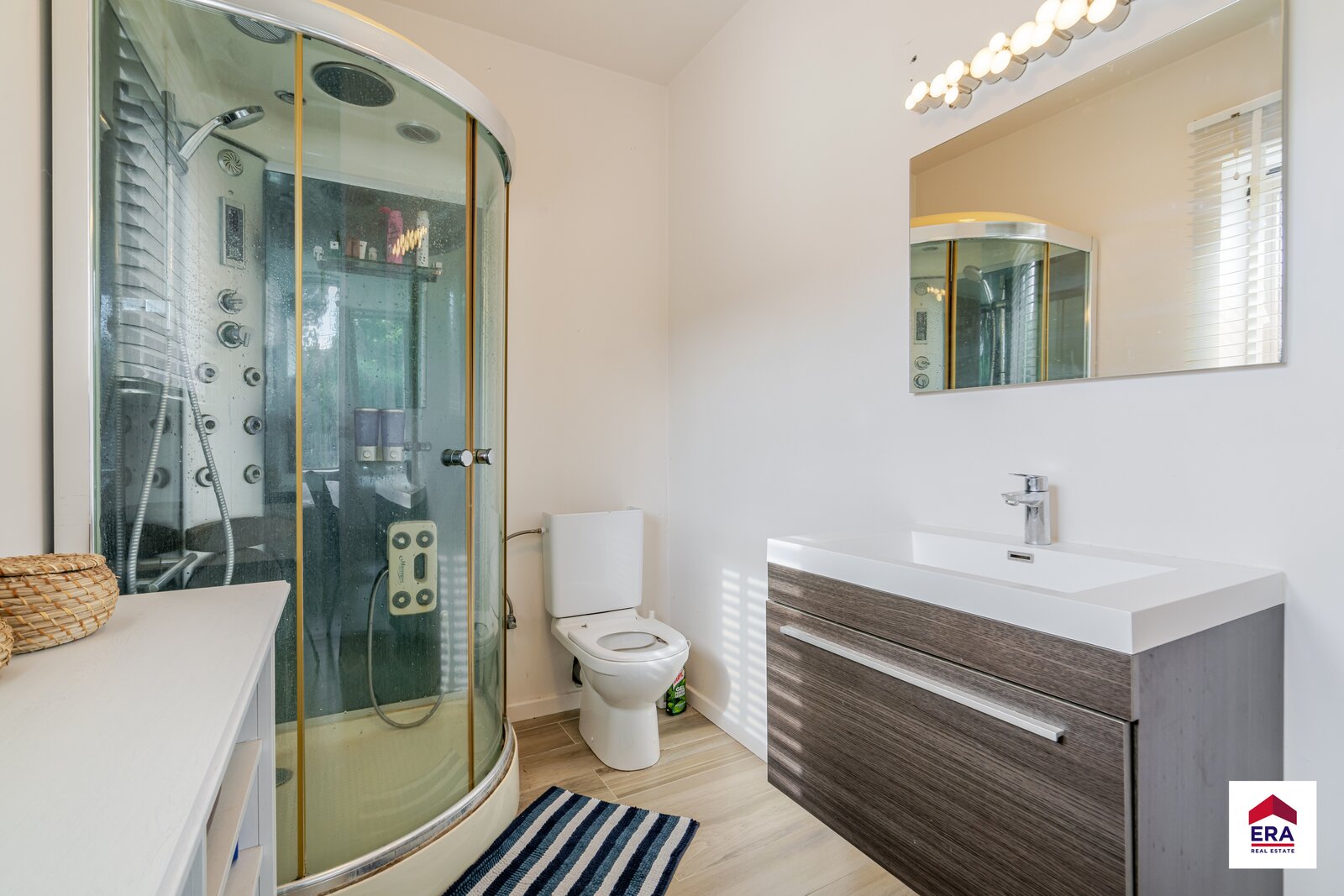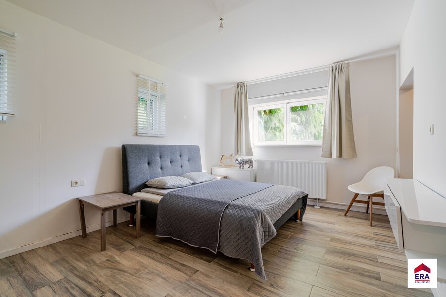 Gelijkvloers: ingedeeld in 2 afzonderlijke studio’s, elk met eigen keuken, dressing, douchekamer en slaaphoek. Ideaal voor verhuur, gasten of inwonende familie.