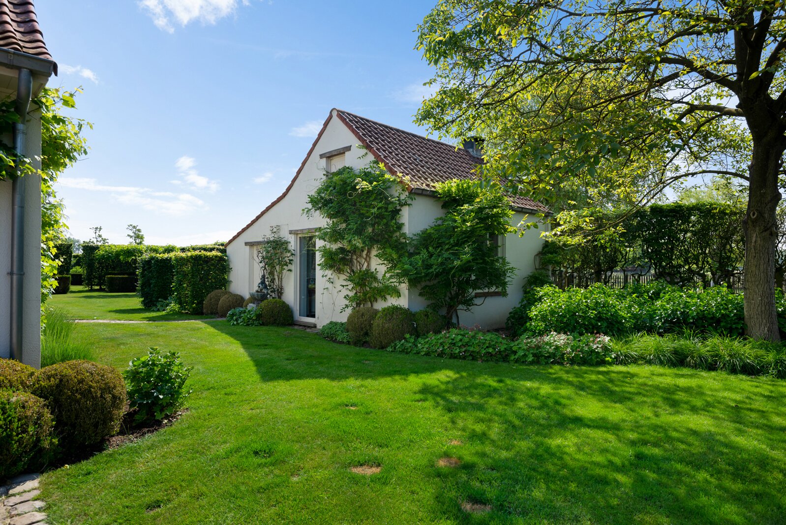 Ruime inkomhal met glaspartij, gastentoilet, bureau, berging, verfijnde keuken met eetplaats, aanpalend aan een overdekt terras met kruidentuin. Ruime living met openhaard met ingemaakte kasten, ingebouwde spots, aanpalend aan terras 2 met open zicht naar de unieke tuin. Drie volwaardige slaapkamers met badkamers. Dressing met toilet aan de masterbedroom. Technische ruimte. Twee inpandige garages. Grote zolder - over heel deze bewoonbare oppervlakte. Extern bakhuis dat ingericht is met bureau/slaapkamer - kitchenette - douchekamer - toilet - zolder. Overdekt terras.