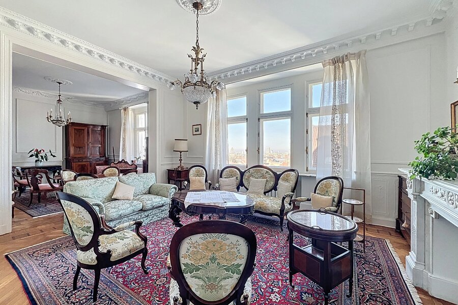 Op een van de mooiste lanen van Brussel biedt Barnes u dit lichte, mooie appartement op de bovenste verdieping van een prachtig gebouw in Haussmann-stijl uit 1912.