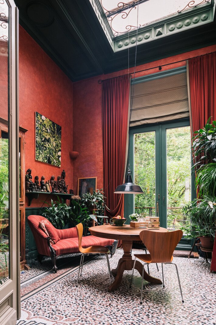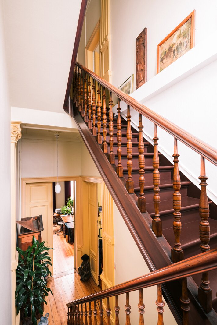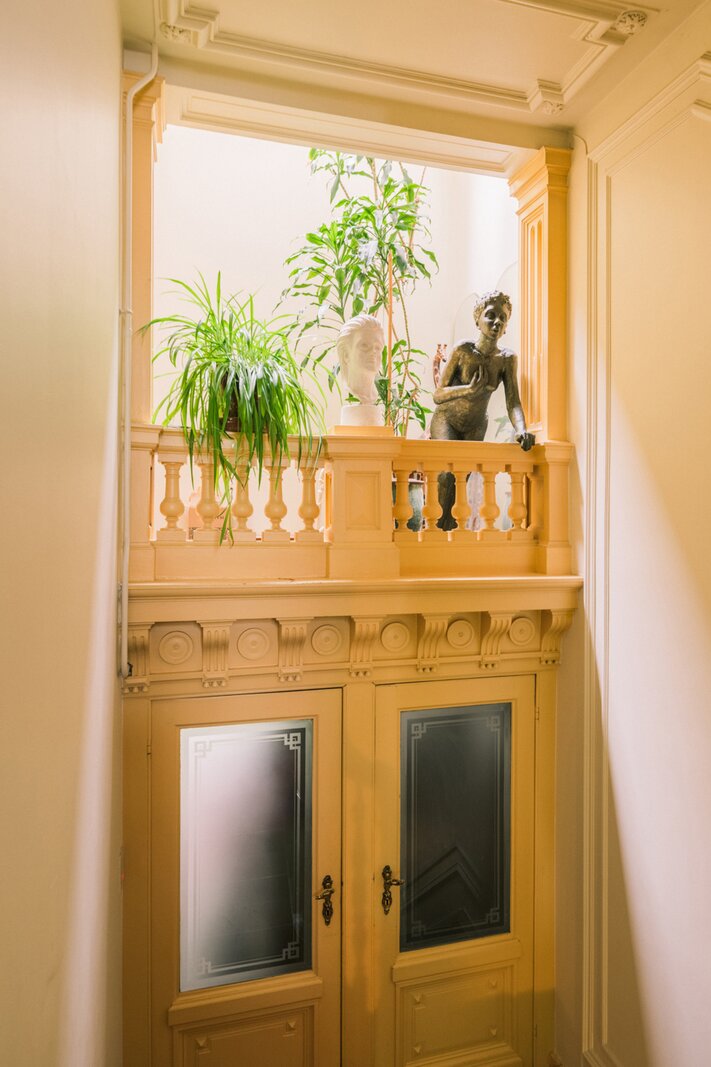 Sommige huizen fluisteren, andere vertellen verhalen. Dit statige 19de-eeuwse herenhuis, op de grens van Zurenborg en het Groen Kwartier, doet zonder twijfel het laatste. Achter de brede gevel ontvouwt zich een wereld van hoge plafonds, sierlijke moulures en authentieke elementen: een plek waar het verleden voelbaar blijft en tegelijk ruimte maakt voor nieuwe ideeën. Binnen hangt een bijzondere sfeer: rustig en bijna verstild, maar met een onderliggende energie die je verbeelding prikkelt.