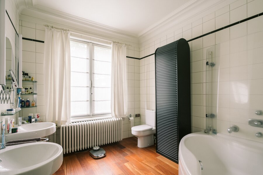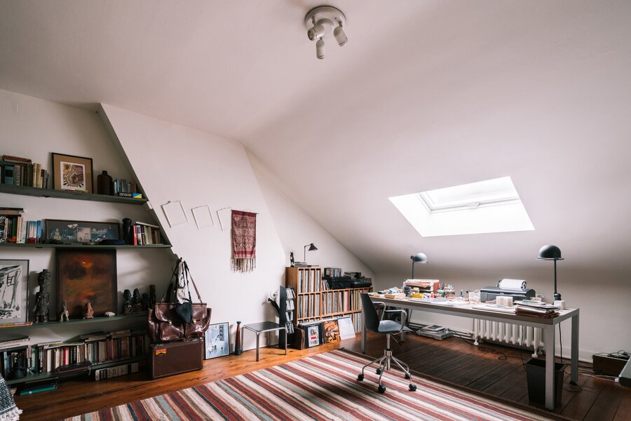 Verdieping na verdieping blijft het huis zich onthullen: een royale bureauruimte, slaapkamers, badkamers en nog meer kamers die wachten op een nieuwe invulling. Atelier, studio, gezinsleven of werken onder één dak: hier kan het allemaal.