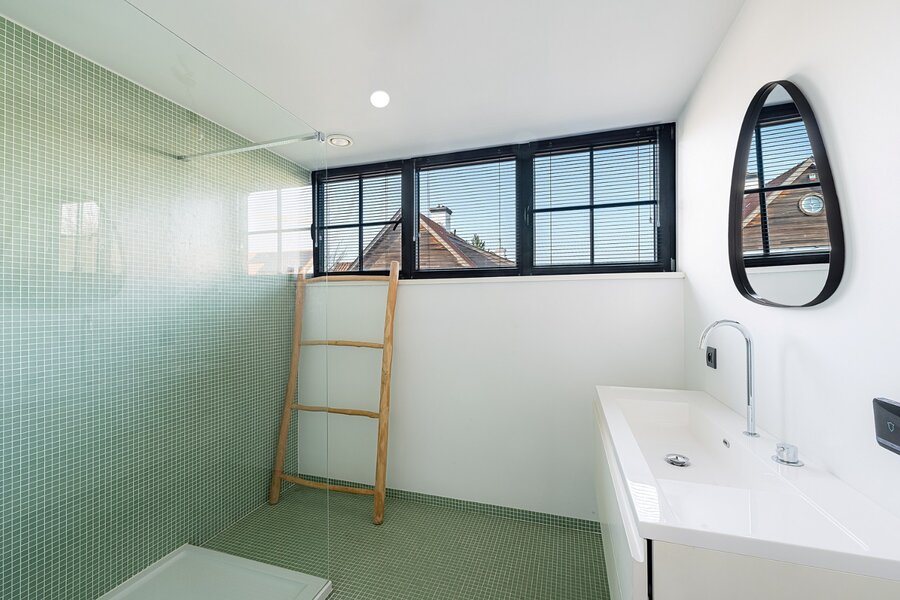 Op de tweede verdieping zijn nog twee slaapkamers (of polyvalente functie) en bergruimte.