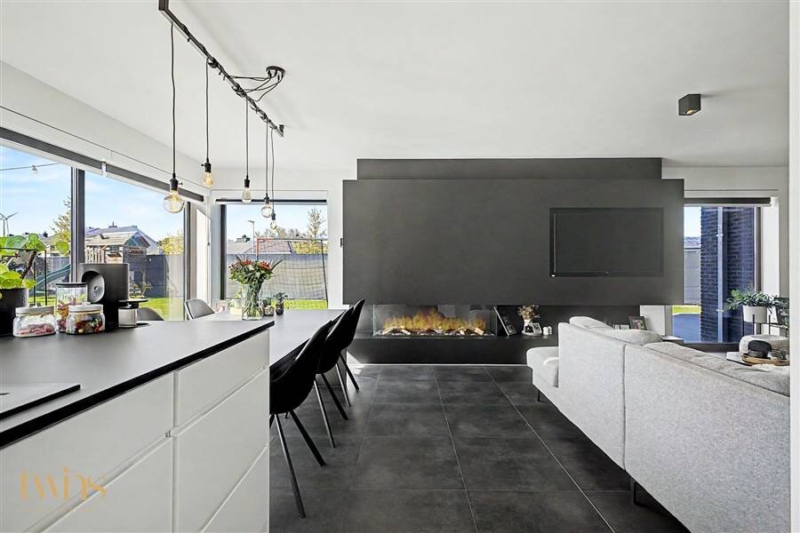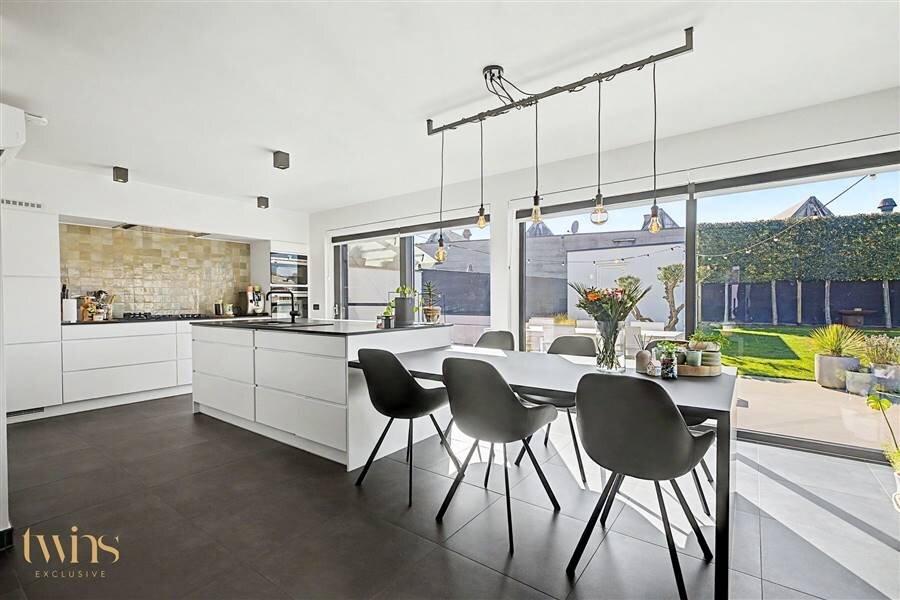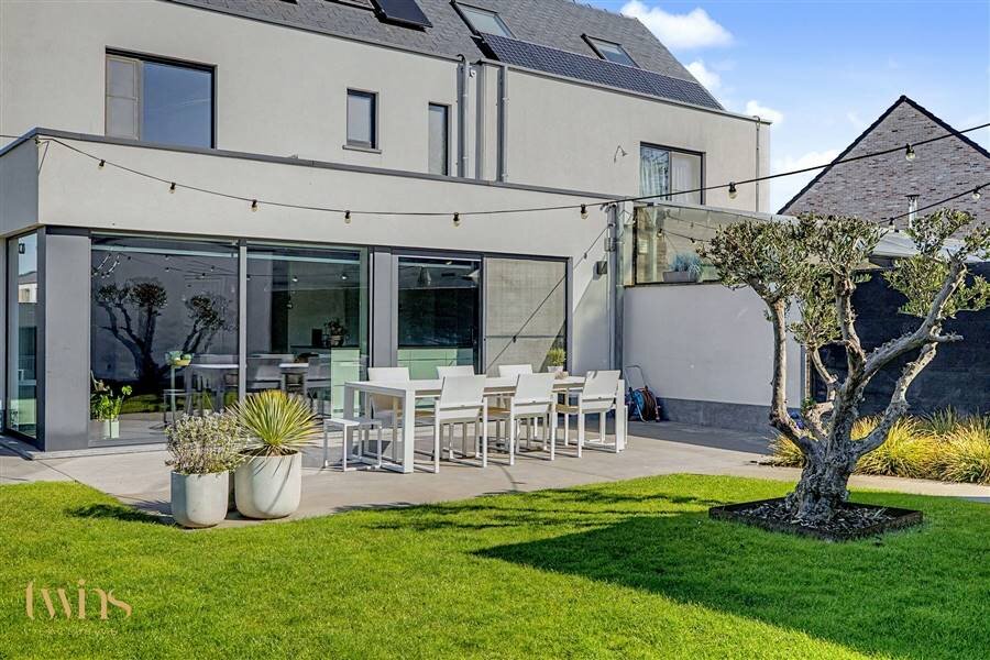 Welkom in deze recente gezinswoning (bouwjaar 2017), discreet gelegen in een rustige en residentiële omgeving nabij het centrum van Grembergen. Deze eigendom belichaamt hedendaagse architectuur, hoogstaand wooncomfort en vooruitstrevende energiezuinigheid een perfecte harmonie voor wie enkel het beste verwacht. Bij het betreden van de woning wordt u verwelkomd in een elegante inkomhal met gastentoilet. Een stijlvolle glazen deur vormt de subtiele overgang naar de leefruimte, waar licht, ruimte en esthetiek centraal staan. De lichtrijke woonkamer met sfeervolle gashaard creëert een warme, uitnodigende ambiance en vloeit moeiteloos over in de open keuken. De keuken is een toonbeeld van design en functionaliteit, uitgerust met hoogwaardige Siemens-toestellen, een centraal eiland en een verfijnde eethoek een plek waar gastronomie en gezelligheid samenkomen. Aansluitend bereikt u het zonnige terras en de prachtig aangelegde, zuidwestgerichte tuin, waar privacy en rust primeren. Achteraan bevindt zich een stijlvol afgewerkt tuinhuis in crepi, voorzien van een vaste trap naar een praktische, droge (wijn)kelder.