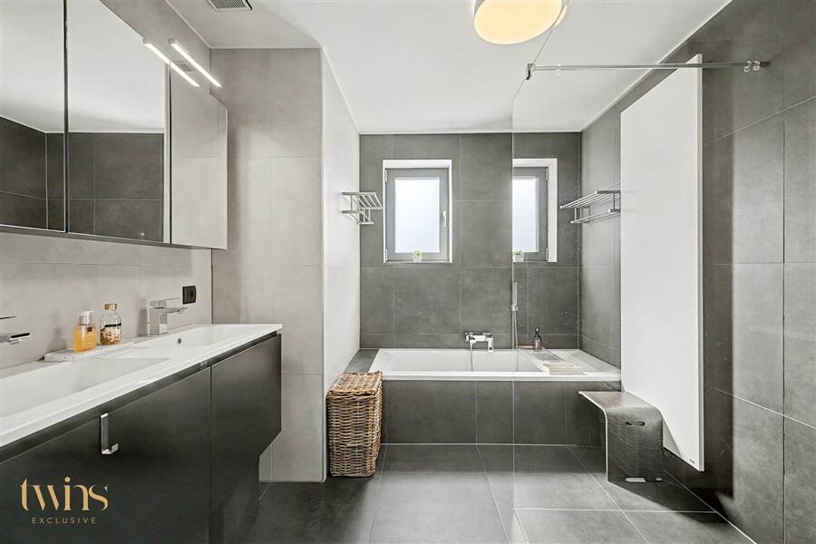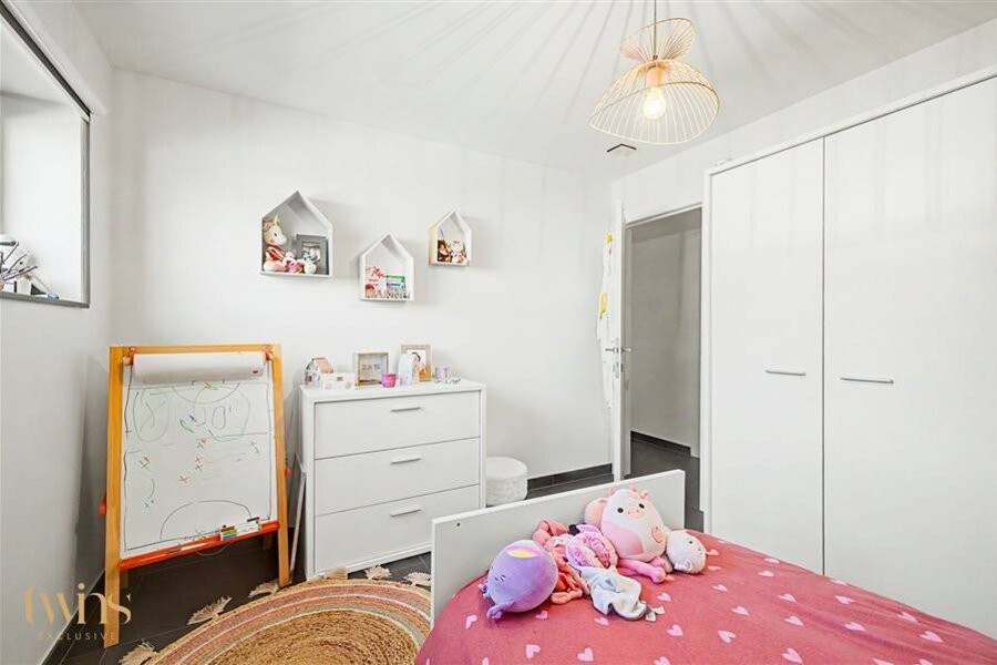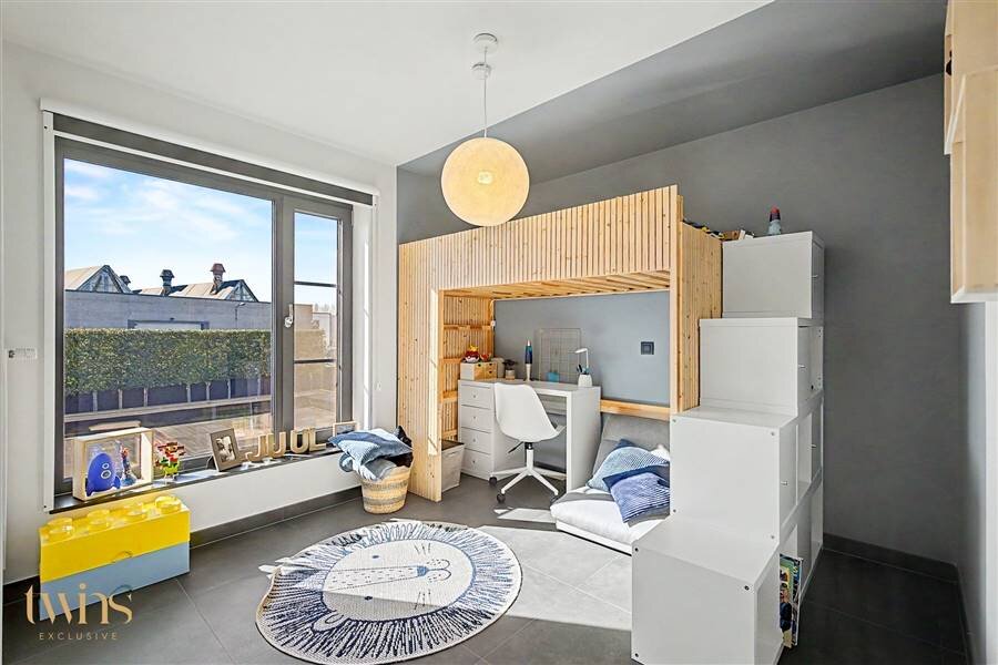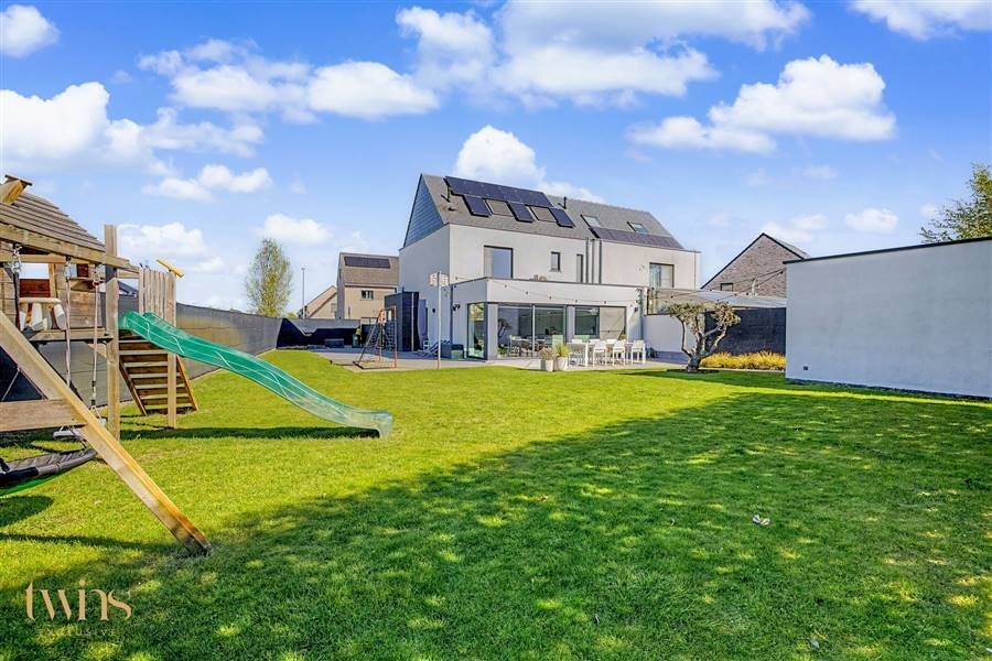 De woning beschikt verder over een functionele berging/wasruimte met directe toegang tot de inpandige garage. Op de eerste verdieping bevinden zich drie volwaardige slaapkamers, een apart toilet en een ruime badkamer met ligbad, inloopdouche en dubbele wastafel. De tweede verdieping is volledig ingericht als master suite met dressing en bijkomende bergruimte een private oase van comfort en rust. Exclusieve troeven:
