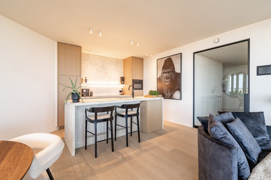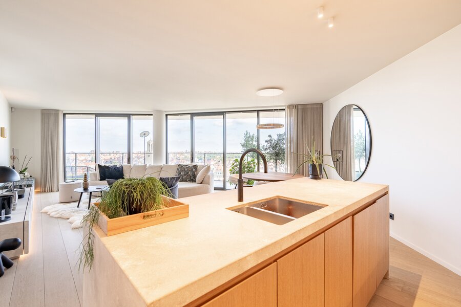 Nieuwbouw appartement met hoogstaande afwerking gelegen in Tower District met weergaloze zichten op Knokke, de golf en de zee.