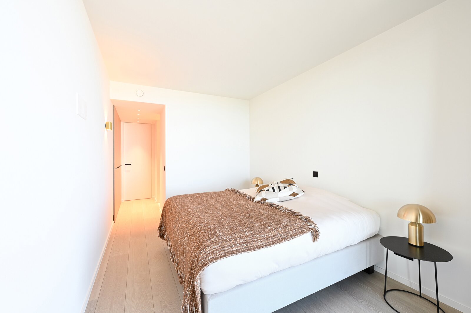 Indeling: Inkomhal met gastentoilet en berging (voorzien voor wasmachine en droogkast. Uitzonderlijke brede living uitgevend op het ruime terras. Volledige ingerichte open keuken. Twee volwaardige slaapkamers, elk met badkamer en ook uitgevend op het terras.