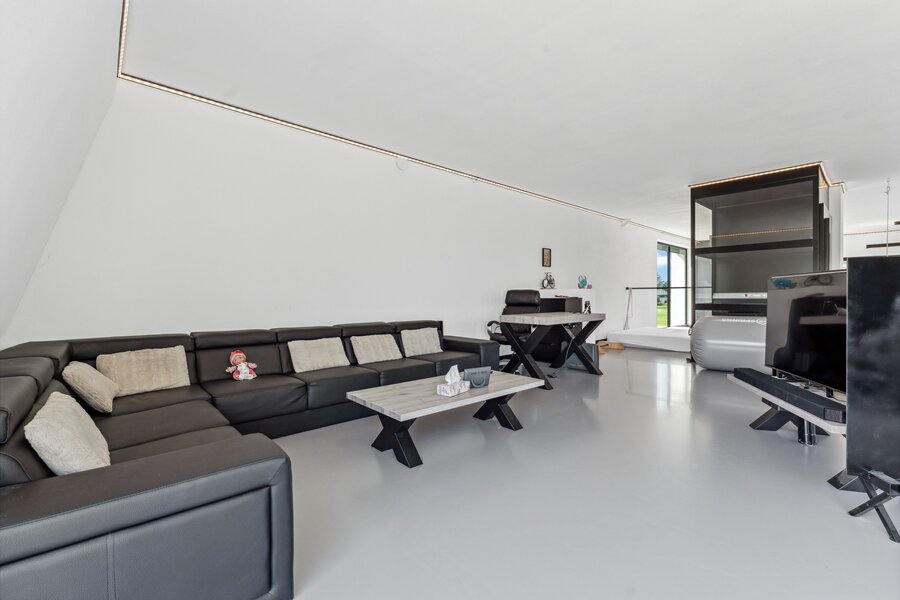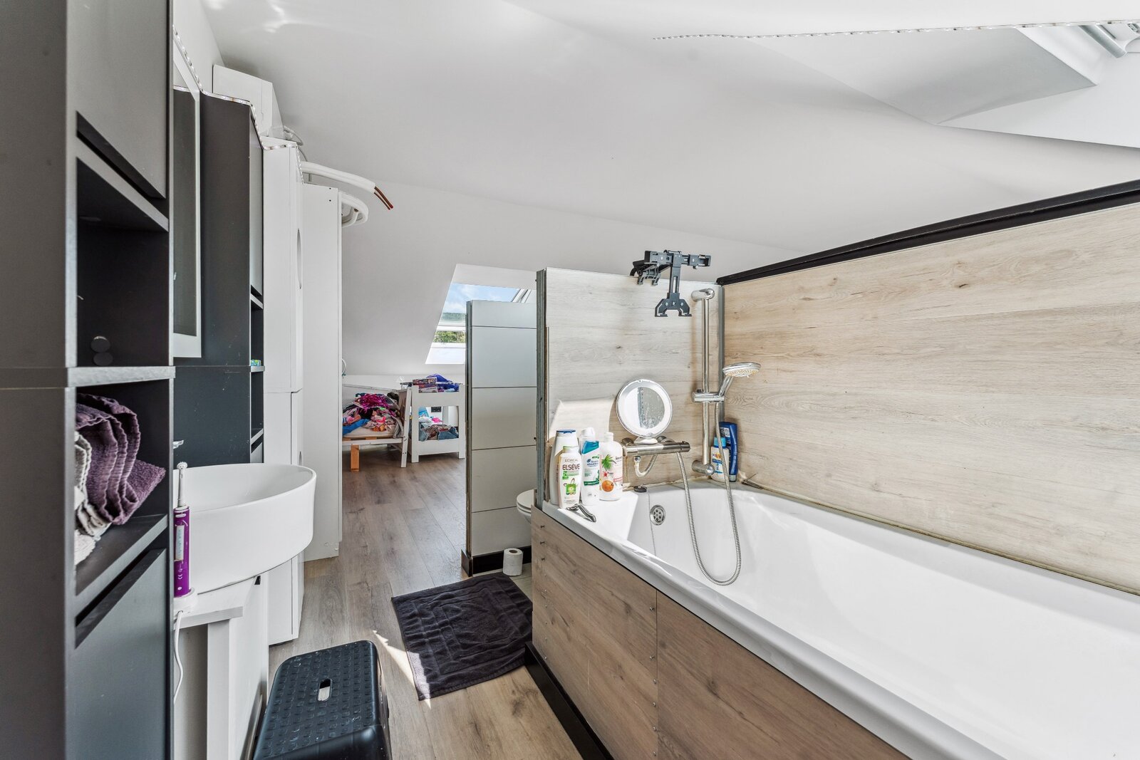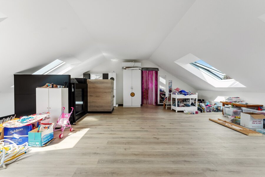 Hier treffen we de 2e slaapkamer en badkamer. Verder biedt deze 2e verdieping een volledig afgewerkte polyvalente ruimte, ideaal als extra slaapkamers, bureau, atelier of hobbyruimte.