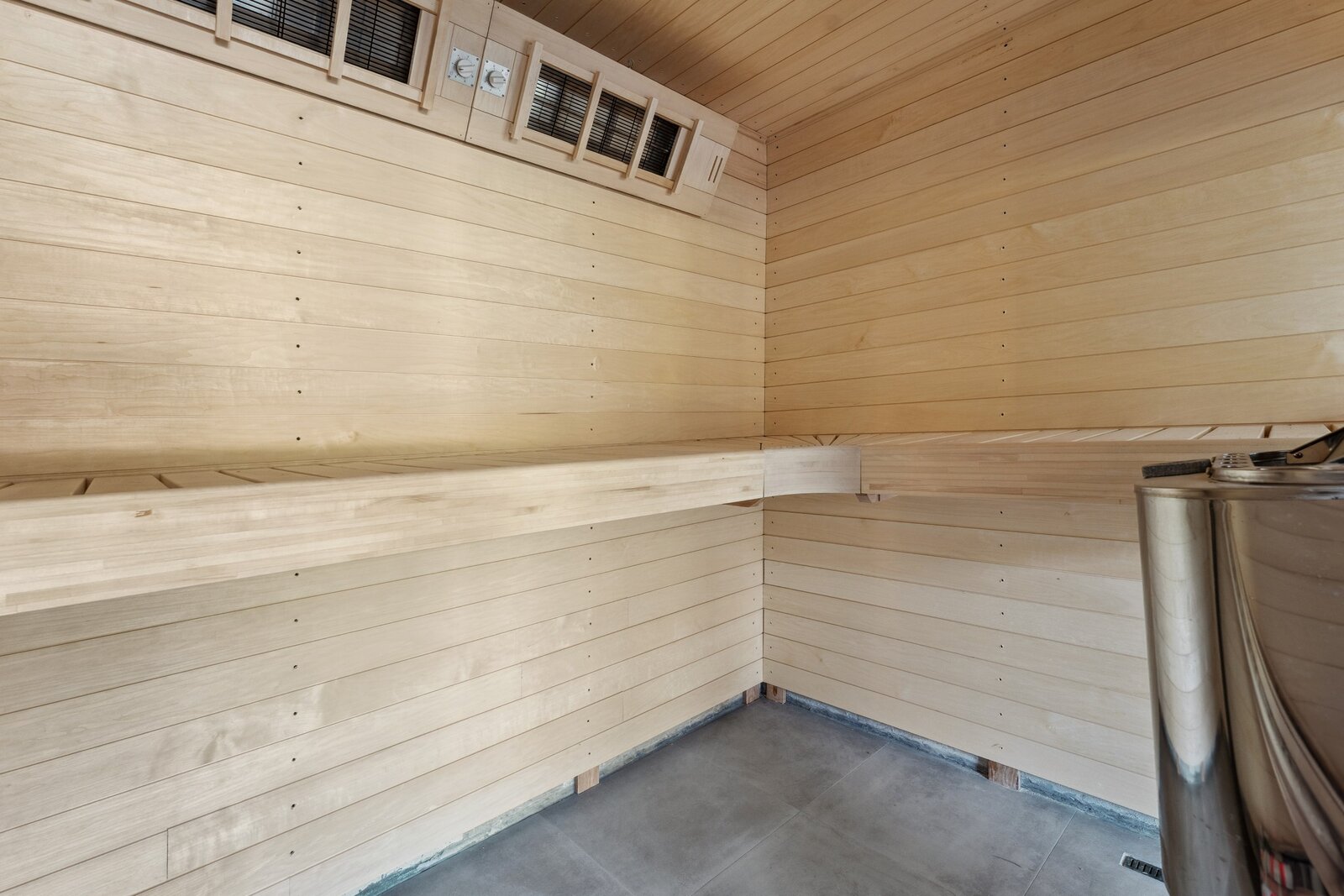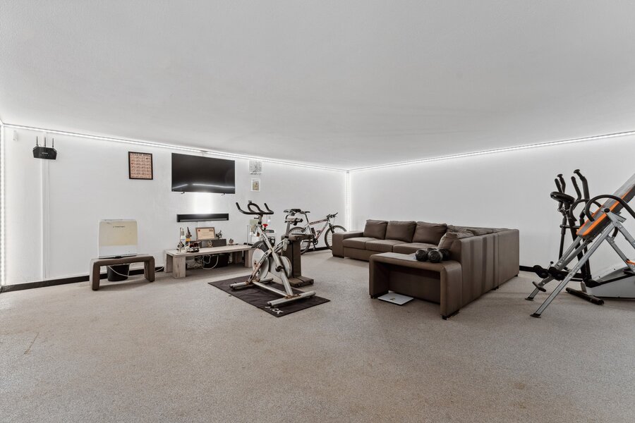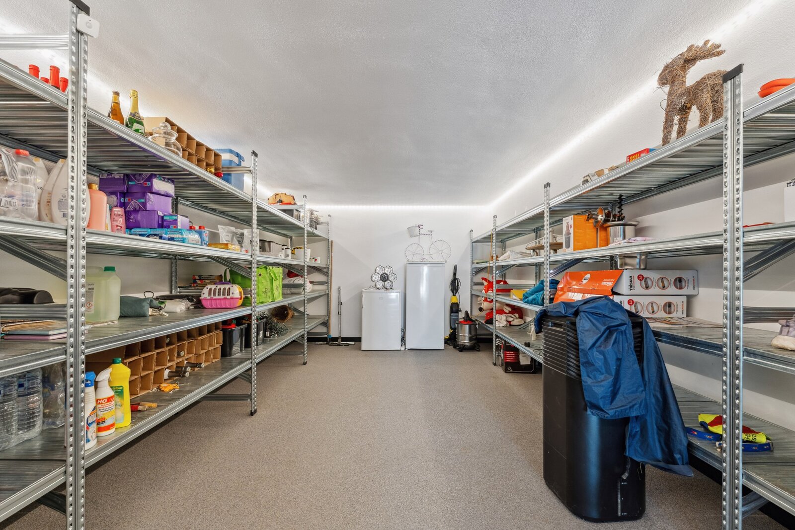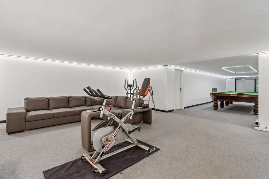 De kelderverdieping is ingericht als fitnessruimte, ontspanningsruimte en TV-hoek, een ruime gekoelde bijkomende bergruimte en een technische ruimte.