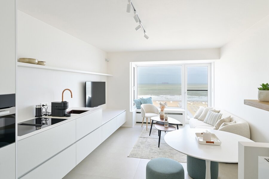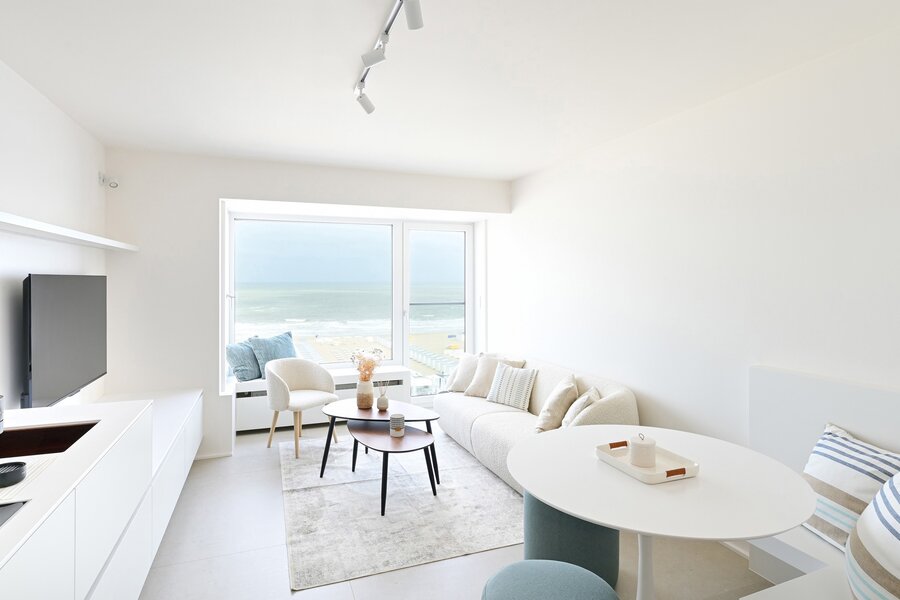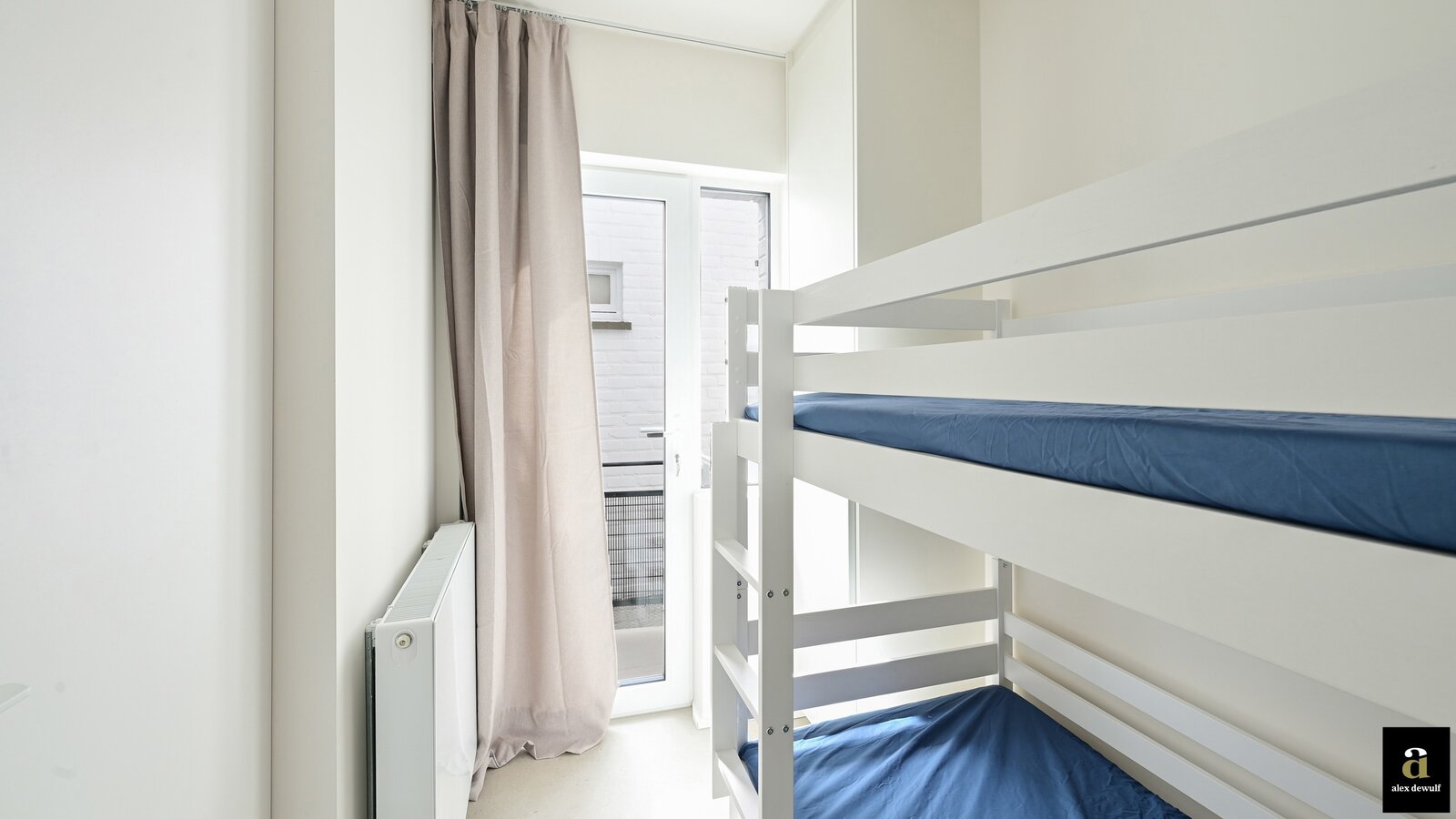 Mooi vernieuwd vakantieappartement met 2 slaapkamers met prachtig zeezicht op een topligging te Knokke aan het Albertstrand, tussen het Casino en het Rubensplein. Op deze toplocatie bevindt u zich op wandelafstand van talrijke winkels en restaurants, terwijl u toch geniet van de rust. Indeling: inkomhal, apart toilet, lichtrijke leefruimte bestaande uit een halfopen keuken (voorzien van moderne toestellen), een salon en een eethoek genietend van een prachtig zeezicht, aparte badkamer met inloopdouche en lavabo, gang met ingebouwde bergkasten, ruime slaapkamer met dubbel bed en ingebouwde kleerkasten uitgevend op een terras achteraan, 2e slaapkamer met stapelbed en buitenraam. Mooie afwerkingsgraad. Nieuwe gaswandketel (condensatie). Nieuwe lift en voorgevel en ramen. Private kelder en een fietsenstalling in het gebouw. Mogelijkheid tot aankoop van een autostaanplaats in de zijstraten.