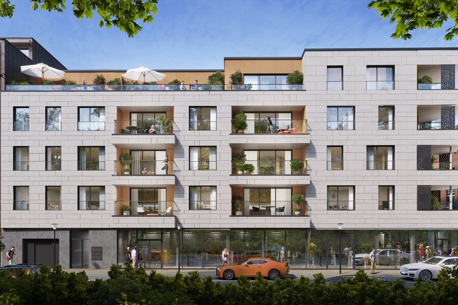 Vaneau Lecobel heeft het genoegen dit prachtige penthouse met 3 slaapkamers en een bruto vloeroppervlak van ±129 m² te presenteren op de 4de en bovenste verdieping van het nieuwe project Arborea, met een adembenemend uitzicht op het Ter kamerenbos. In een groene omgeving, dicht bij openbaar vervoer en winkels, is het penthouse als volgt ingedeeld: ruime hal met geïntegreerde garderobe en gastentoilet die leidt naar een grote, lichte woonkamer van ±45 m² met volledig uitgeruste open keuken, een kantoorruimte en een prachtig terras van ±11 m². De hal leidt naar drie zeer ruime slaapkamers (±11, ±13 en ±15 m²), waaronder een suite met een eigen doucheruimte met dubbele wastafel, en een badkamer. Er is ook een wasruimte. De gebruikte materialen zijn zorgvuldig geselecteerd om een zeer hoog niveau van energie-efficiëntie te garanderen. Vloerverwarming met warmtepompsysteem, dual-flow ventilatie, zonnepanelen, semi-massieve eiken parketvloer. Extra parkeerplaats en kelder. Uitstekende thermische en akoestische isolatie. Geschatte EPB A. Oplevering eind 2026-begin 2027. Verkoop onderhevig aan BTW. Neem nu contact met ons op voor meer informatie over het project "Arborea" op 02/669.21.70 of per e-mail op promotion@lecobel.be.