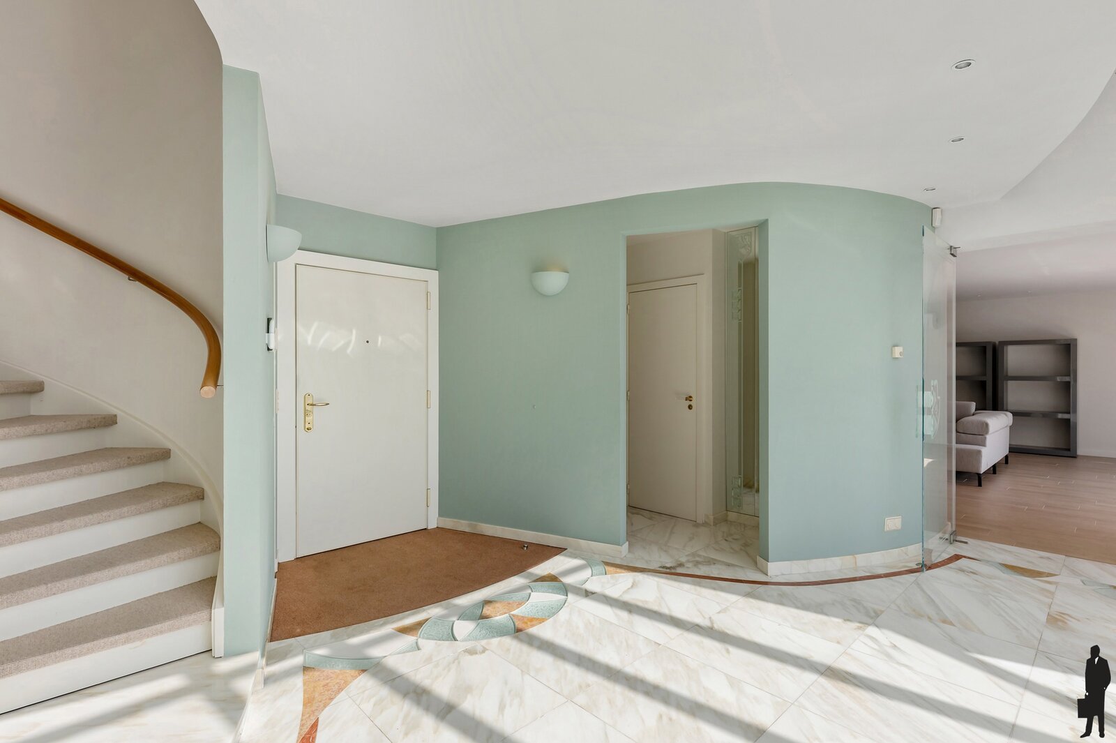 Royale inkomhal op marmeren vloer met videofonie en veiligheidsdeur