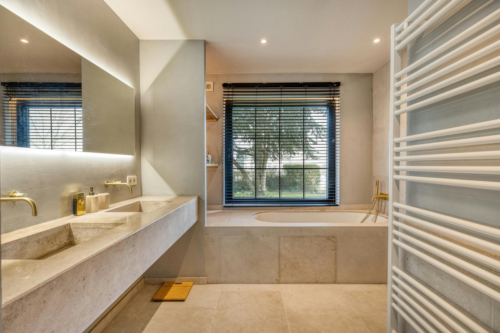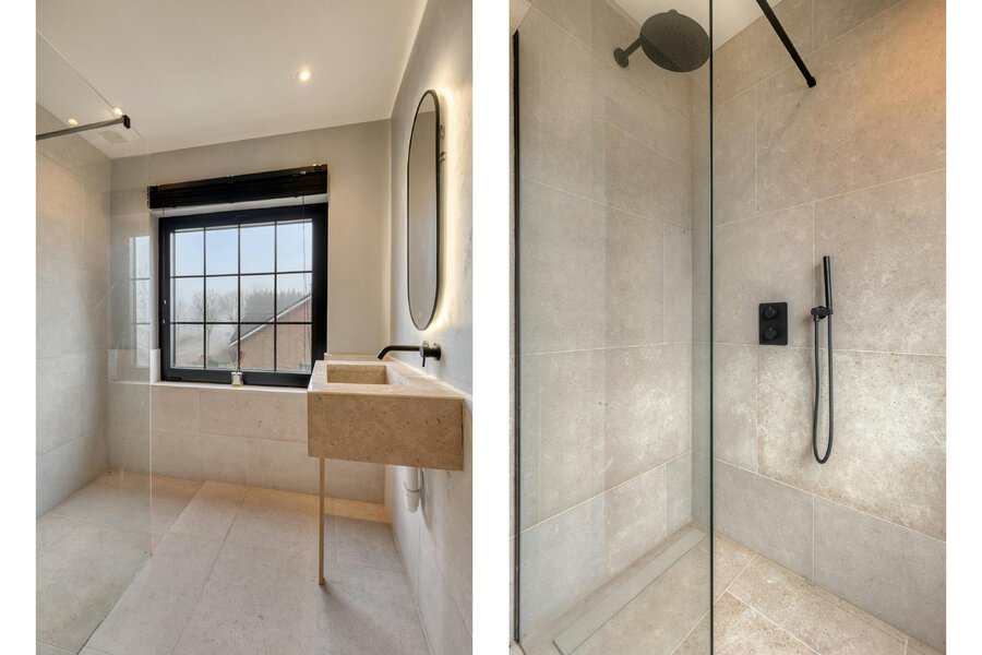 - master slaapkamer met ensuite badkamer (dubbele lavabo, ligbad én inloopdouche)