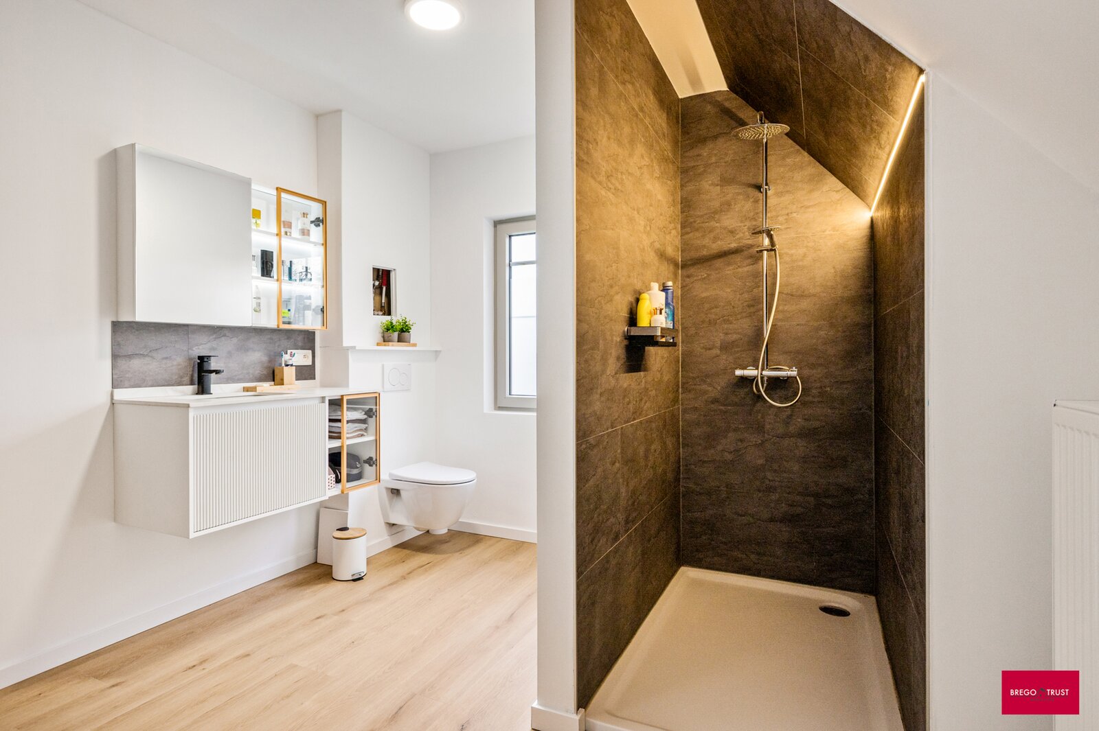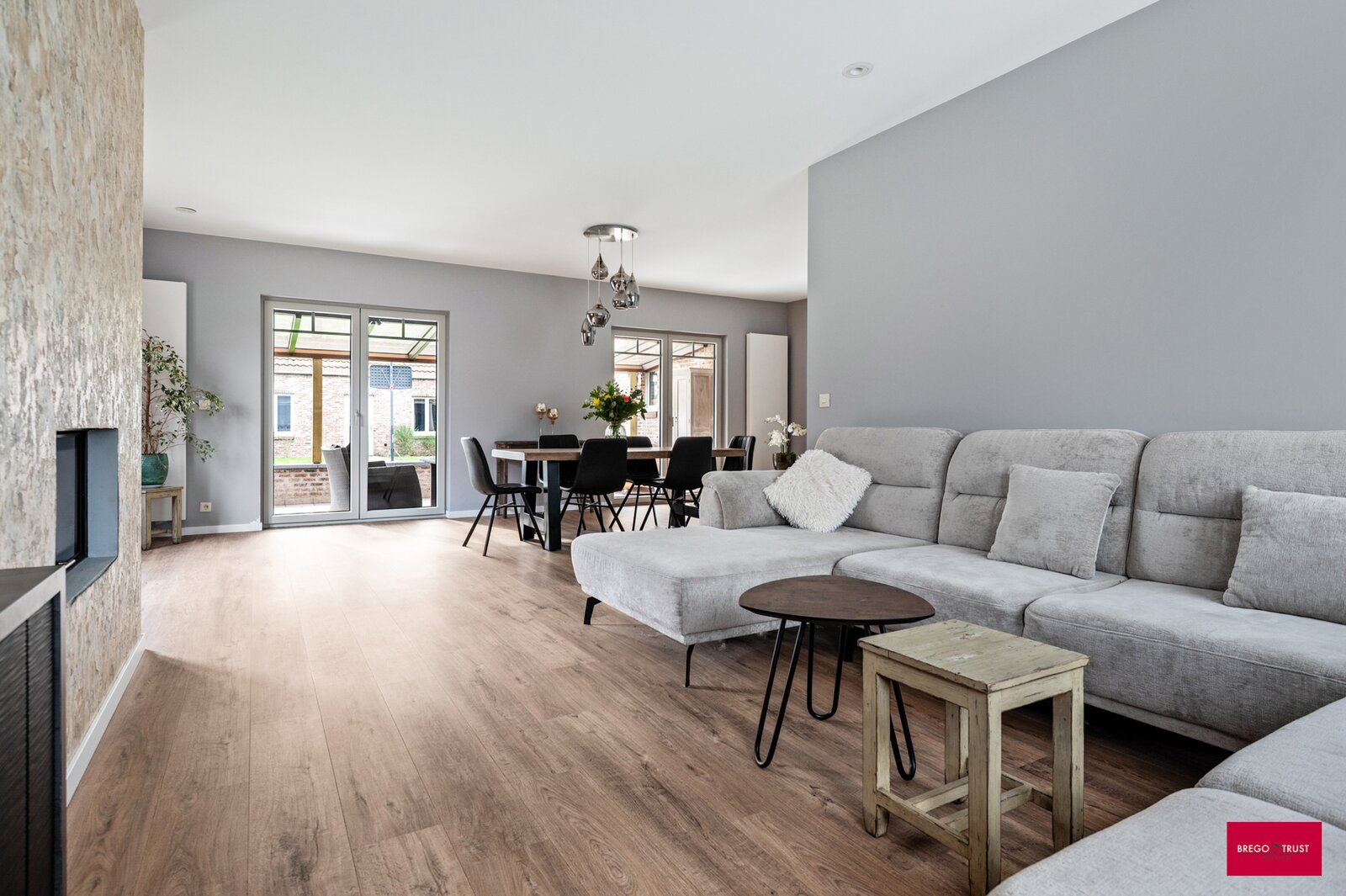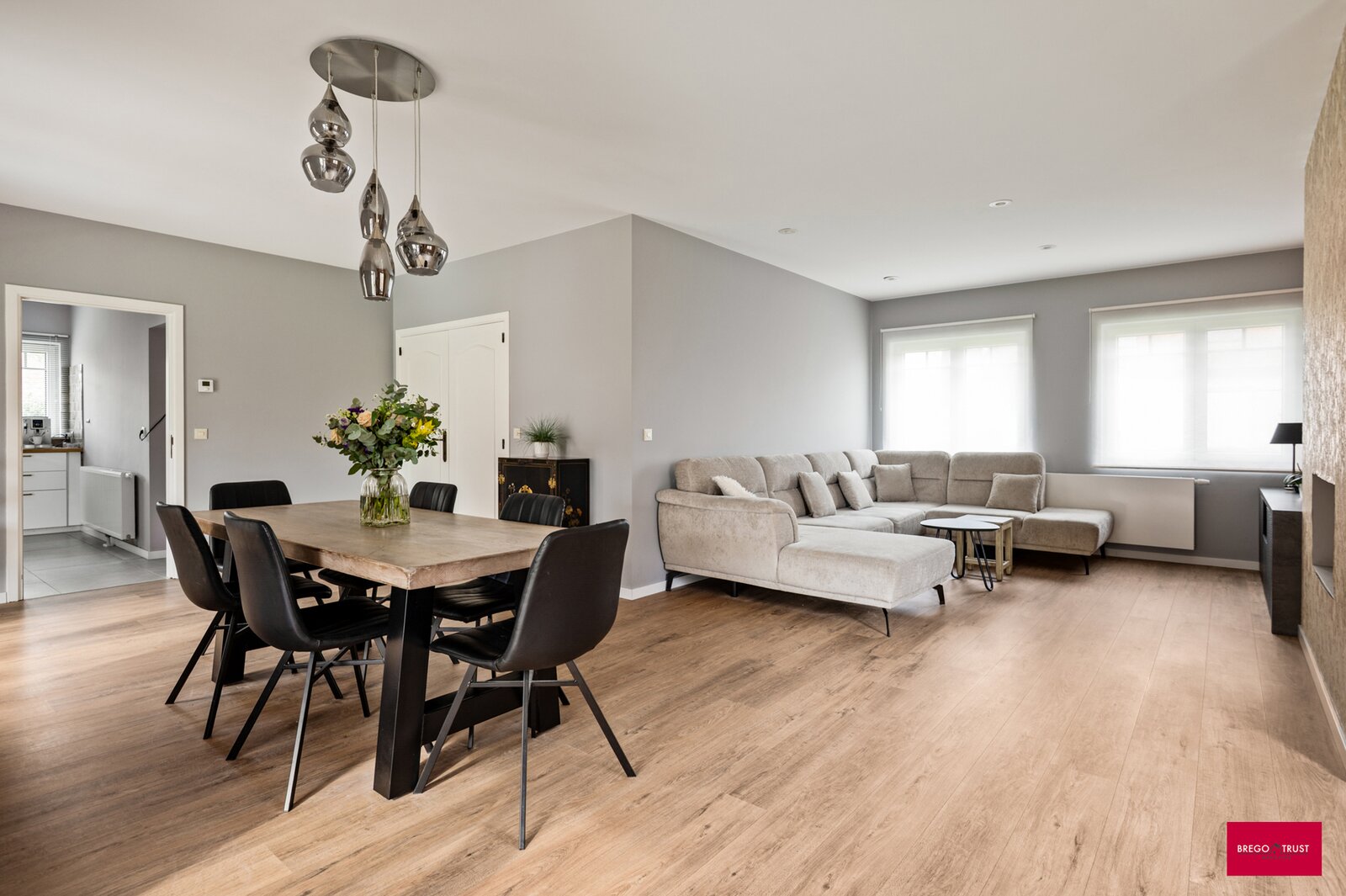 De lichtrijke leefruimte vormt samen met de ruime volledig geïnstalleerde keuken het hart van de woning. Dankzij de grondige renovatie geniet u hier van hedendaags wooncomfort zonder zorgen.