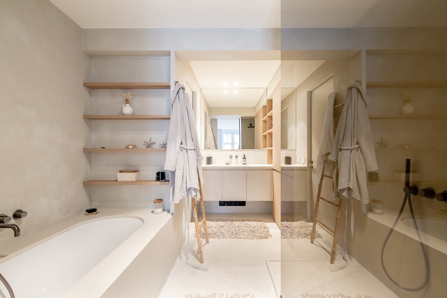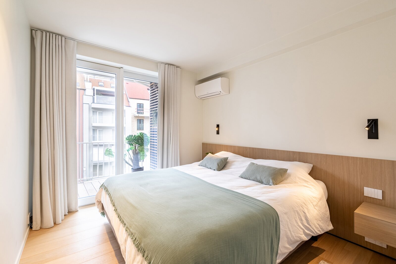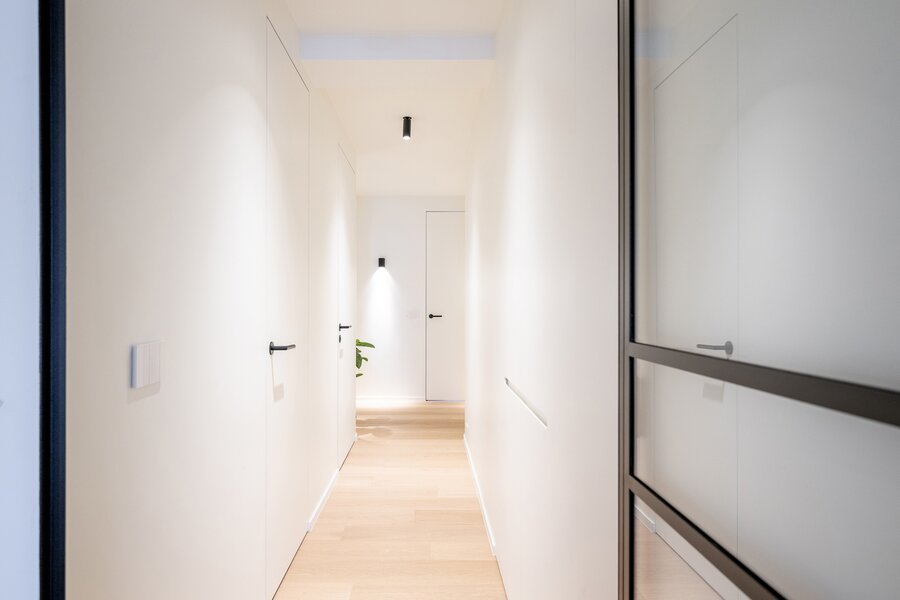 Drie slaapkamers, waarvan twee met directe toegang tot het terras. Drie moderne badkamers, waarvan één met ligbad. Ruime gemeenschappelijke fietsenberging in het gebouw.