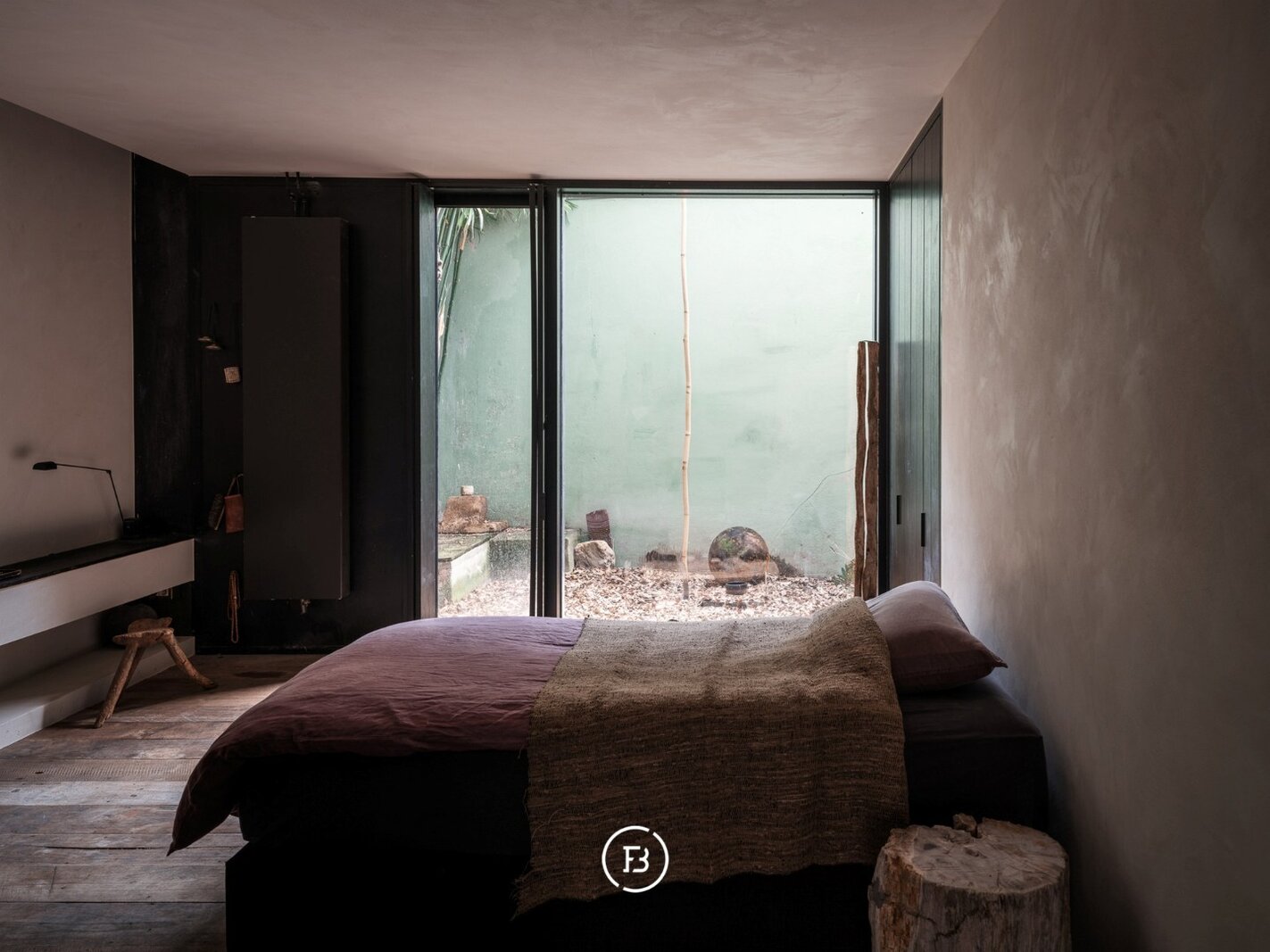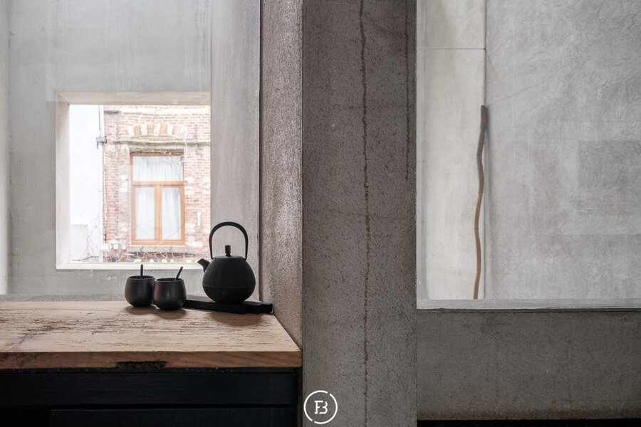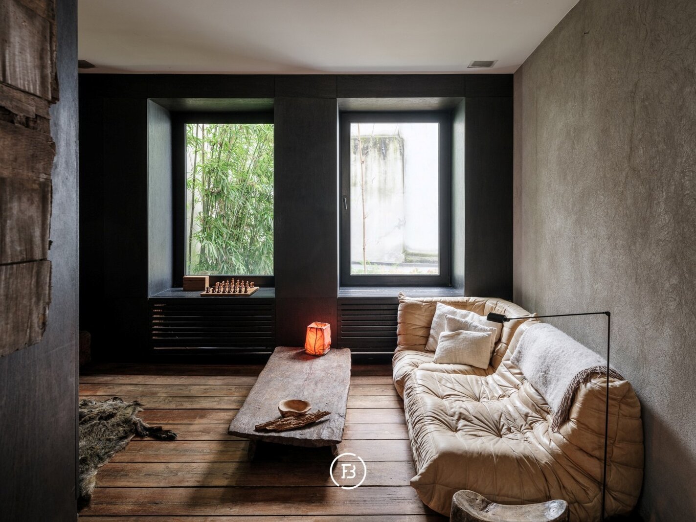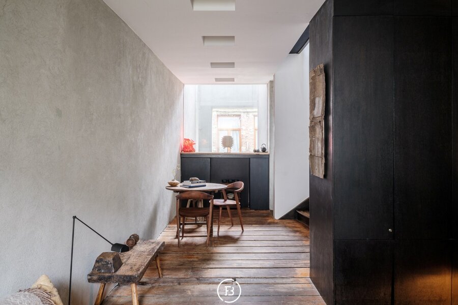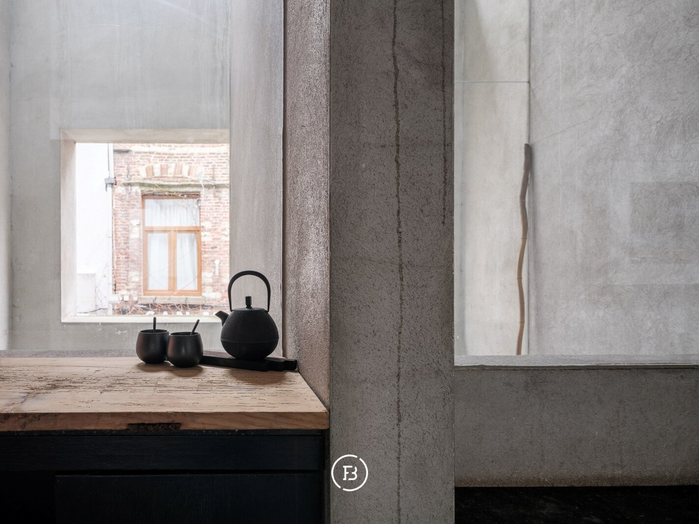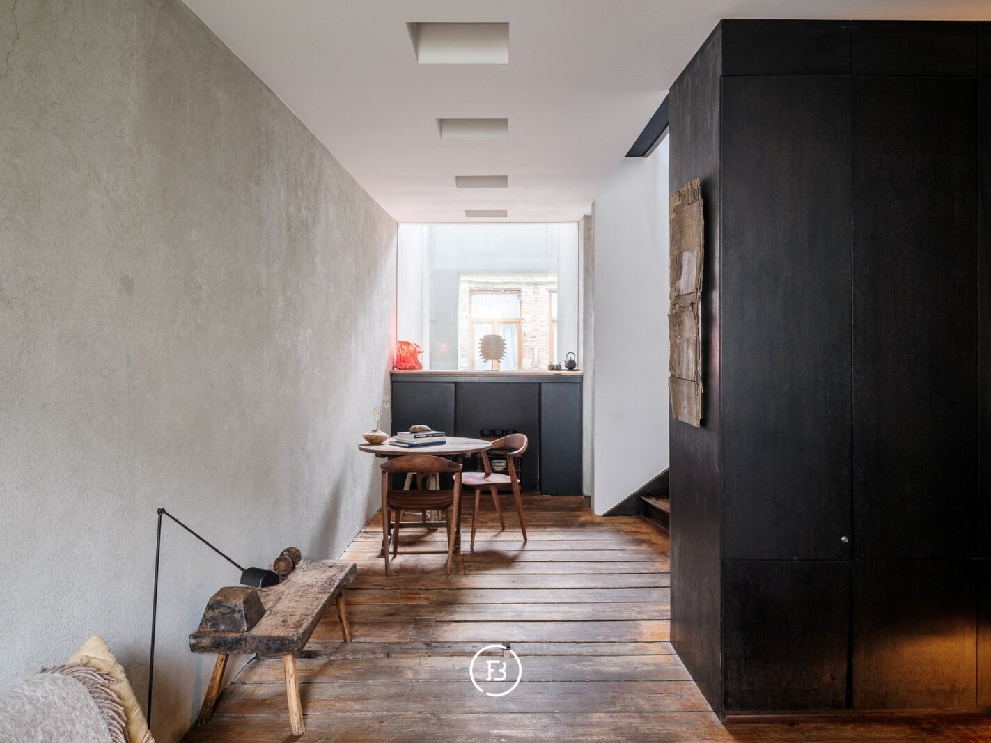 Het pand onderging recent een zorgvuldig uitgevoerde, gedeeltelijke renovatie, met interieurkeuzes geïnspireerd door de vormentaal en filosofie van Axel Vervoordt en Tatsuro Miki. Zorgvuldig geselecteerde materialen en accenten zorgen voor een hedendaagse, strakke afwerking met een warme, tijdloze uitstraling.