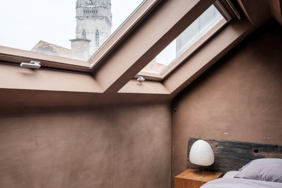 De derde en hoogste verdieping is voorbehouden voor de master bedroom, met een uniek en onbelemmerd uitzicht op het Gentse Belfort.