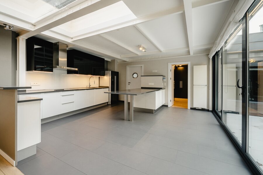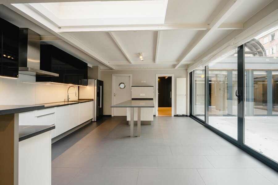In de woonwijk Place Saint-Pierre, vlakbij het Jubelpark en de Europese wijk, biedt deze unieke loft met vier slaapkamers 320 m² woonoppervlakte en een terras.