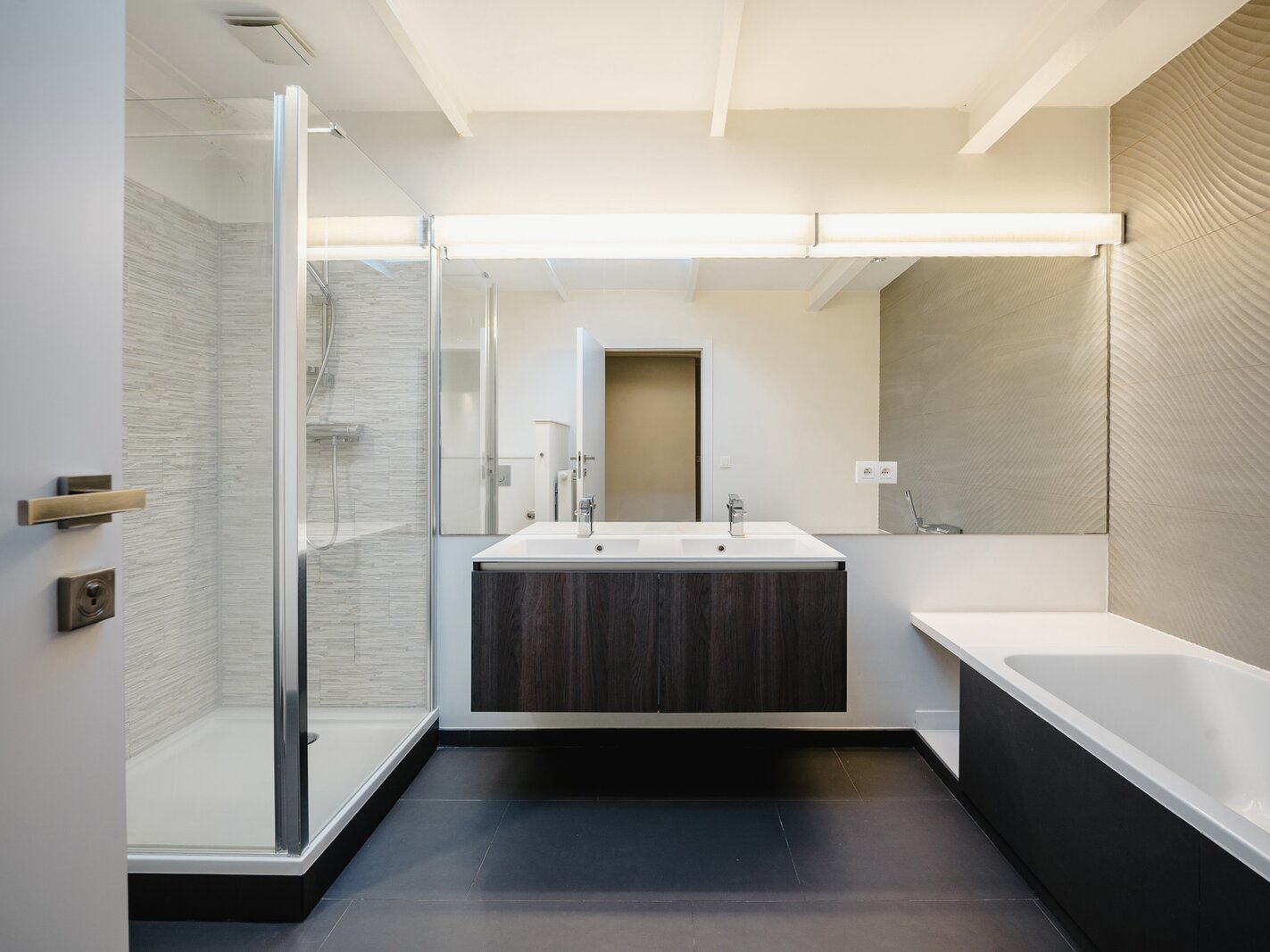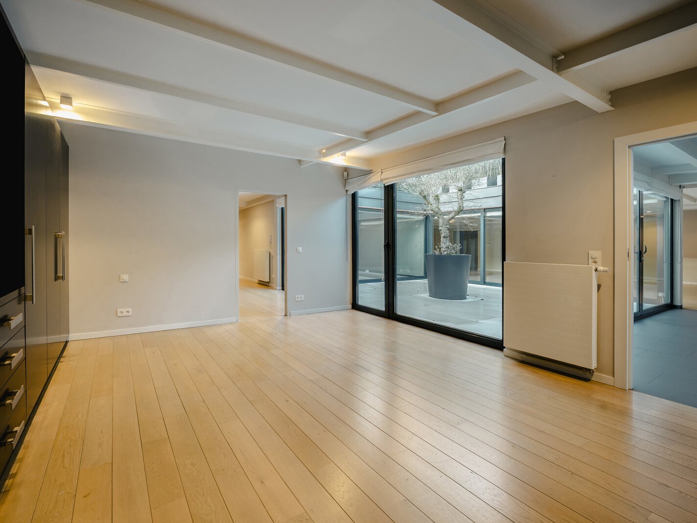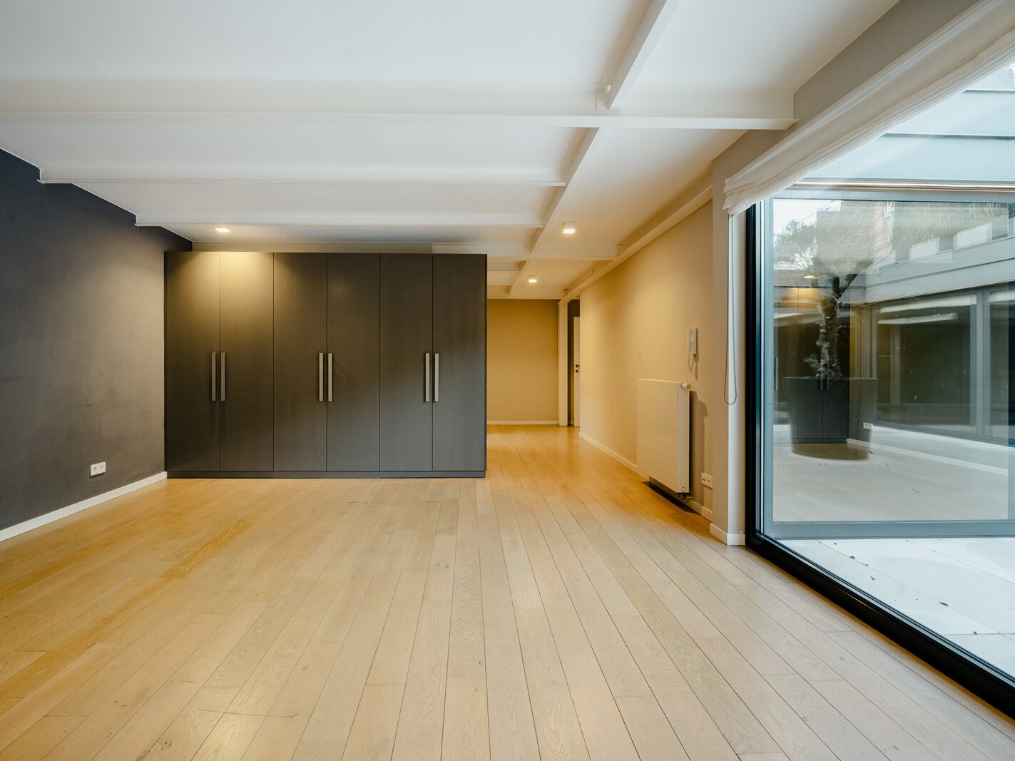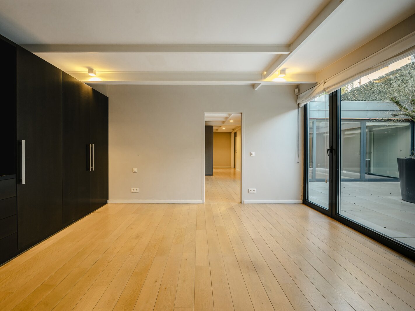 Het appartement beschikt over een inkomhal met garderobe en apart toilet, die uitkomt op een ruime ontvangstruimte van 115 m², een volledig uitgeruste open keuken (Amerikaanse koelkast, magnetron, oven, stoomoven, inductiekookplaat, teppanyaki, afzuigkap, vaatwasser), met eethoek en bar. Het slaapgedeelte bestaat uit een slaapkamer met een inloopkast en een doucheruimte, een hoofdslaapkamer met een aangrenzende inloopkast/badkamer, en twee slaapkamers met inloopkasten die een doucheruimte delen. Dit appartement kan worden gebruikt als thuisbioscoop, bibliotheek of kantoor. Een centraal terras op het zuidwesten geeft toegang tot alle kamers.