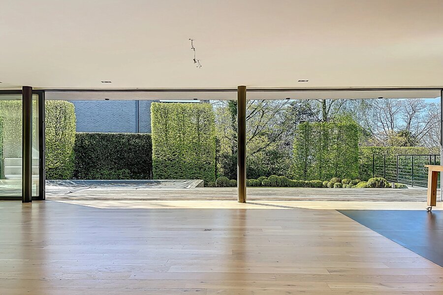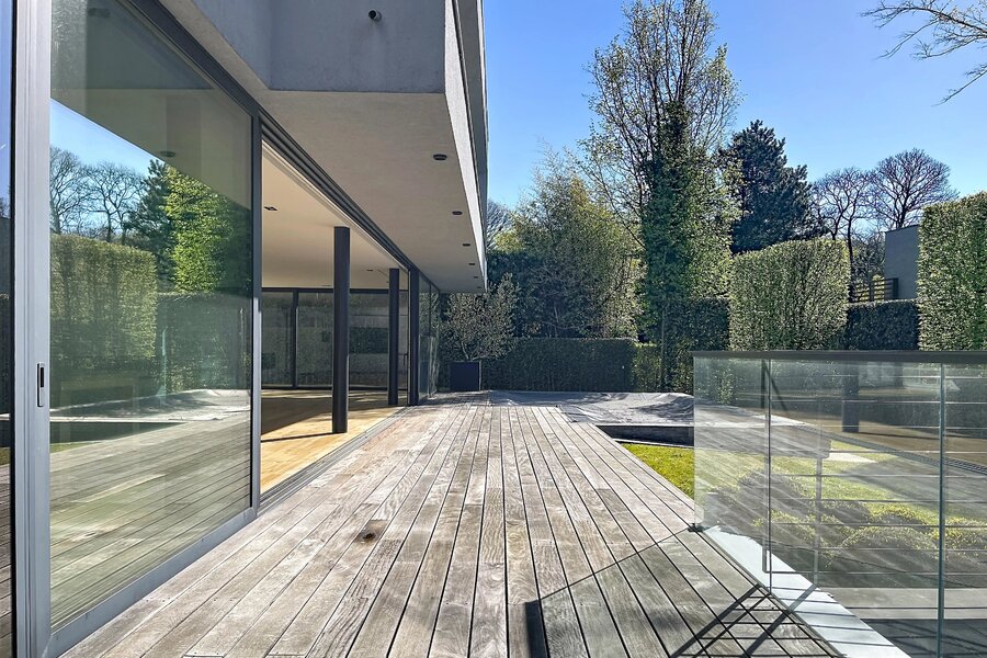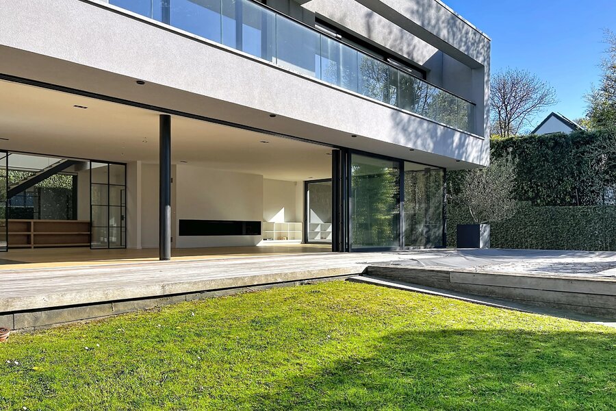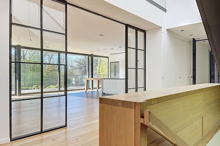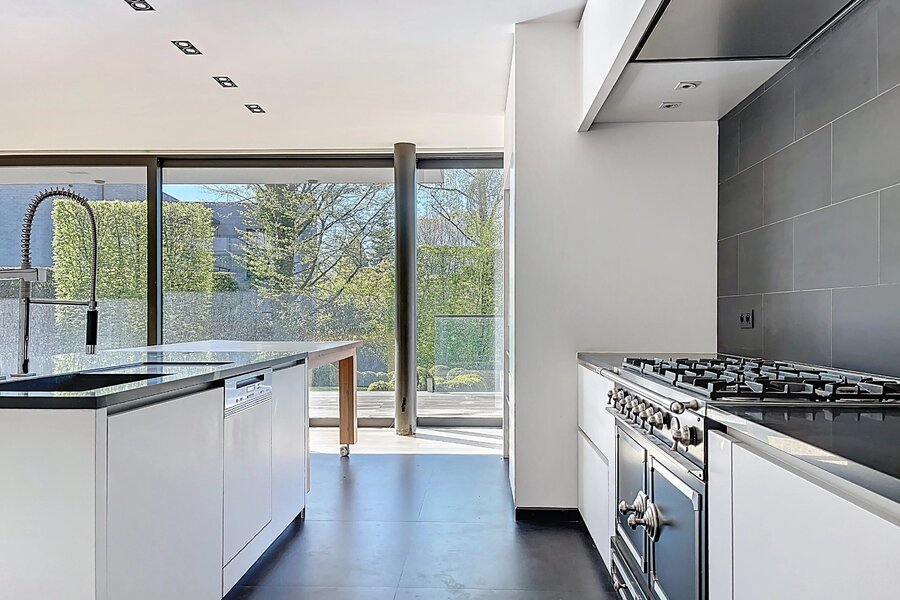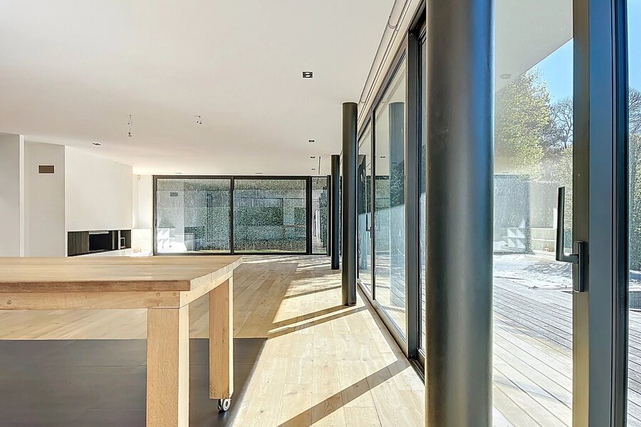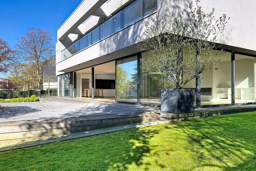 In de buurt van het Bois de la Cambre, alle faciliteiten en voorzieningen, deze lichte moderne villa van 734m2 (volgens PEB) biedt mooie voorzieningen.
