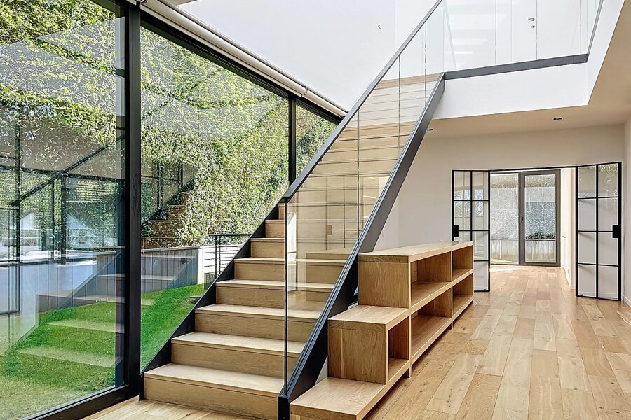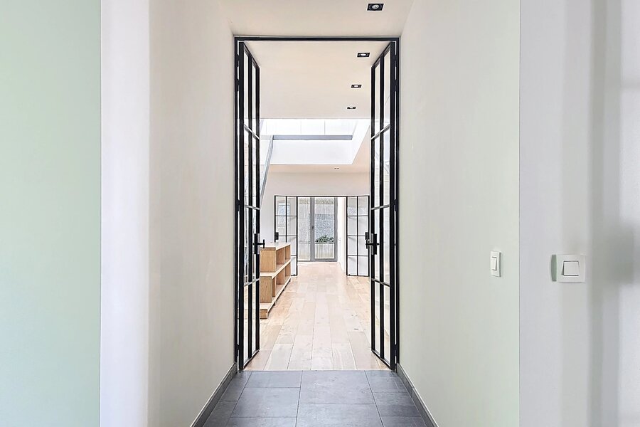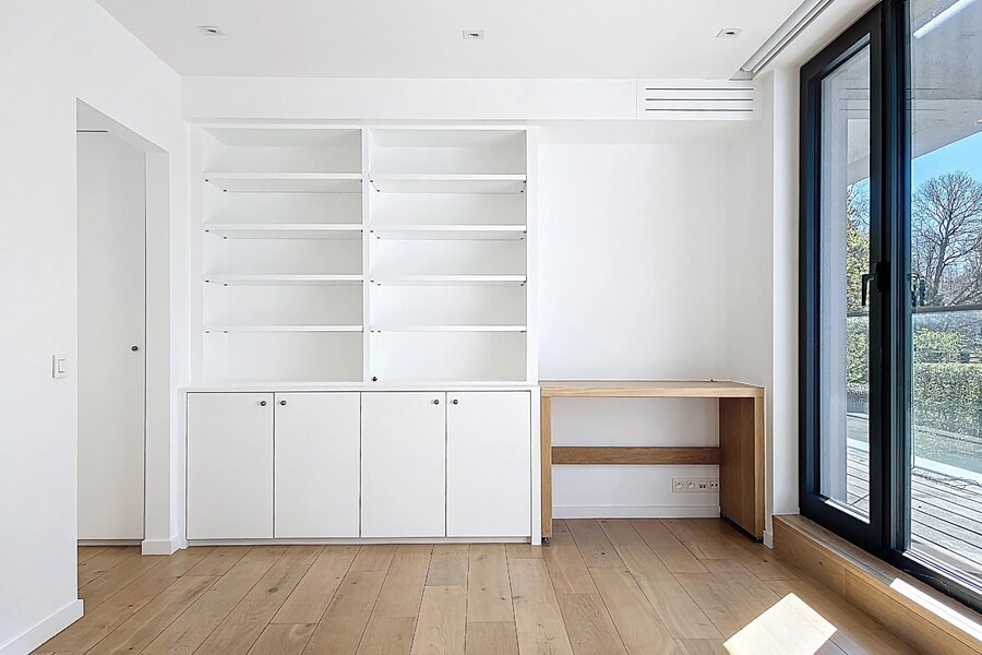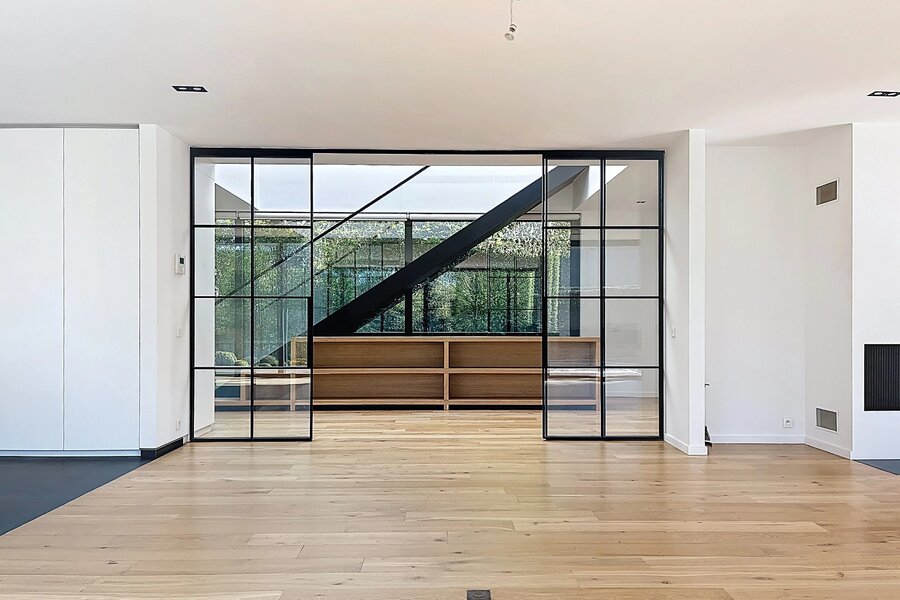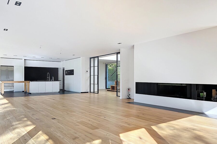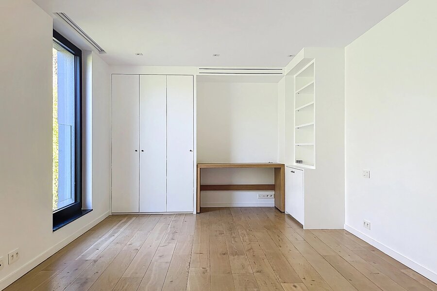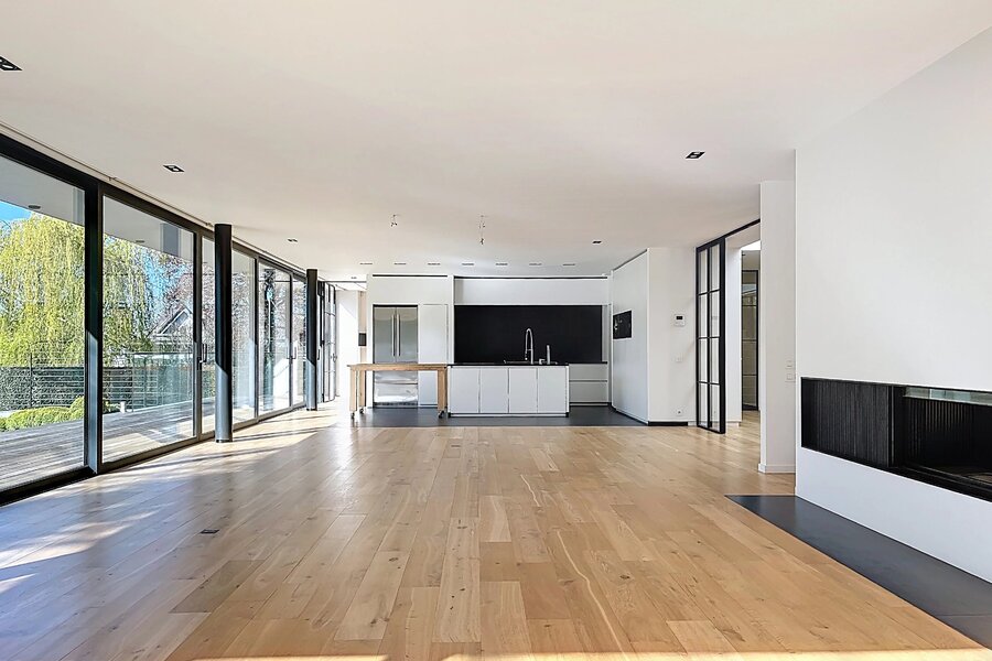 In de buurt van het Bois de la Cambre, alle faciliteiten en voorzieningen, deze lichte moderne villa van 734m2 (volgens PEB) biedt mooie voorzieningen.